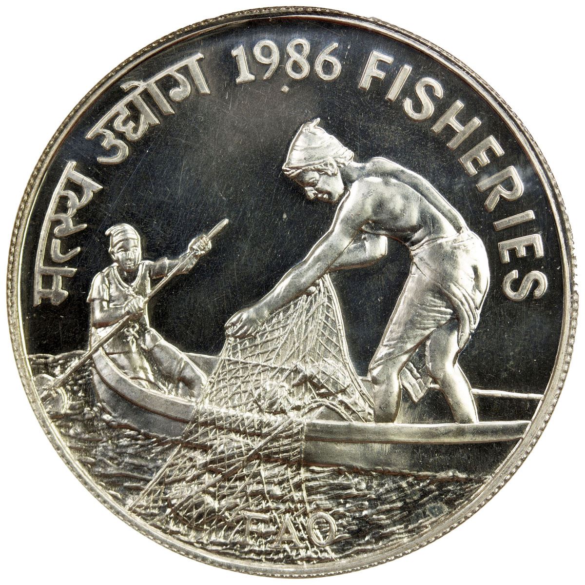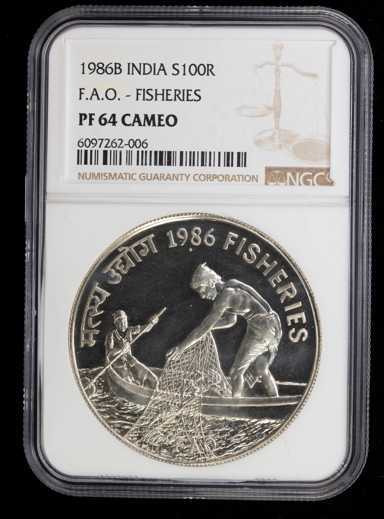 INDIA: AR 100 rupees, 1986-B, KM-283, Fisheries, NGC graded PF64 CAM.