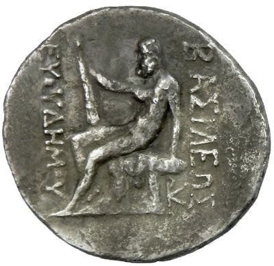 INDO-GREEK: Euthydemos I, ca. 230-200 BC, AR tetradrachm (14.73g), Bop-10A, diademed head of ruler right / Hercules seated on rocks, his legs crossed, holding mace resting on the middle of his thigh, some polished in reverse background, Very Fine, R.
