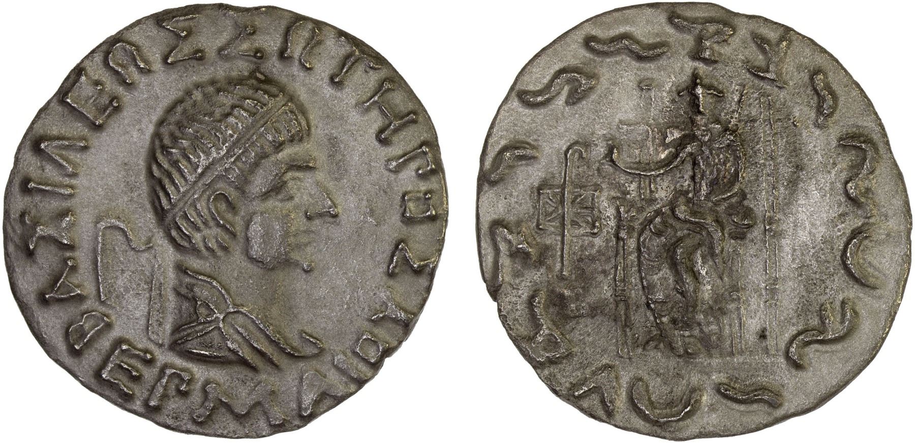 INDO-GREEK: Hermaios, ca. 90-70 BC, AR tetradrachm (7.90g), Bop-12B, Senior-30aT.1, diademed bust right // Zeus seated three-quarters left, control mark to left, attractive strike, Choice VF.