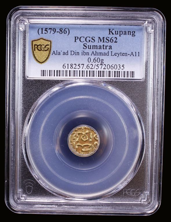 ACEH: Ala al-Din bin Ahmad, 1579-1586, AV kupang (0.60g), Leyten-A11b, a pleasant mint state example, PCGS graded MS62, ex Jürgen M. Wilmes Collection.