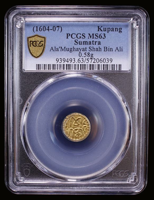 ACEH: Alauddin Ri'ayat Syah Sayyid al-Mukammal, 1589-1604, AV kupang (0.58g), Leyten-A14B, a lovely mint state example! PCGS graded MS63, ex Jürgen M. Wilmes Collection.
