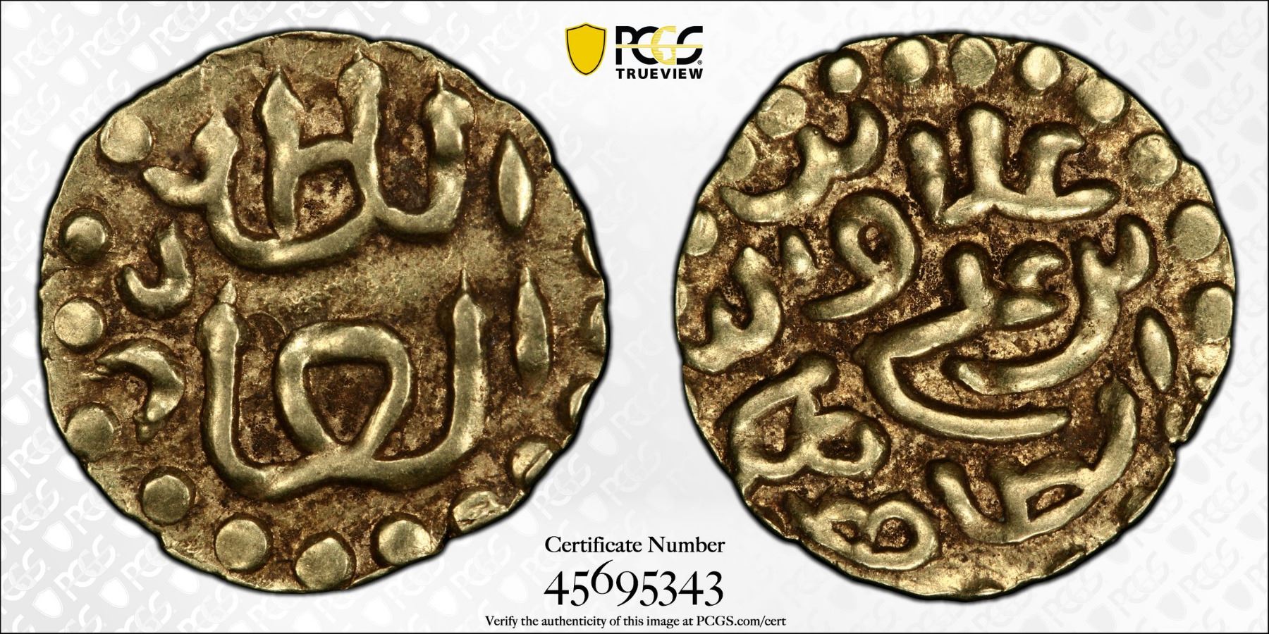 INDONESIA: ACEH: Alauddin al-Kahar, 1537-1571, AV kupang (0.60g), Leyten-A6e, an attractive nearly mint state example! PCGS graded AU58. Alauddin Ri'ayat Syah al-Kahar was the third Sultan of the Aceh Sultanate. He is considered to be one of the strongest rulers in the history of the sultanate and greatly strengthened Aceh. Alauddin's reign was marked by increased conflict with his Portuguese and Malay rivals and his dispatching of envoys to the Ottoman sultan, Suleiman the Magnificent in the 1560s.