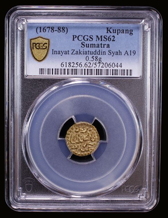 ACEH: Inayat Shah, 1678-1688, AV kupang (0.58g), Leyten-A19b, a pleasant mint state example, PCGS graded MS62, ex Jürgen M. Wilmes Collection.