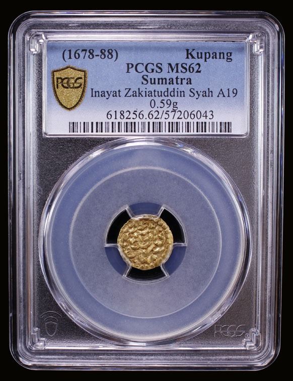 ACEH: Inayat Shah, 1678-1688, AV kupang (0.59g), Leyten-A19a, a pleasant mint state example, PCGS graded MS62, ex Jürgen M. Wilmes Collection.