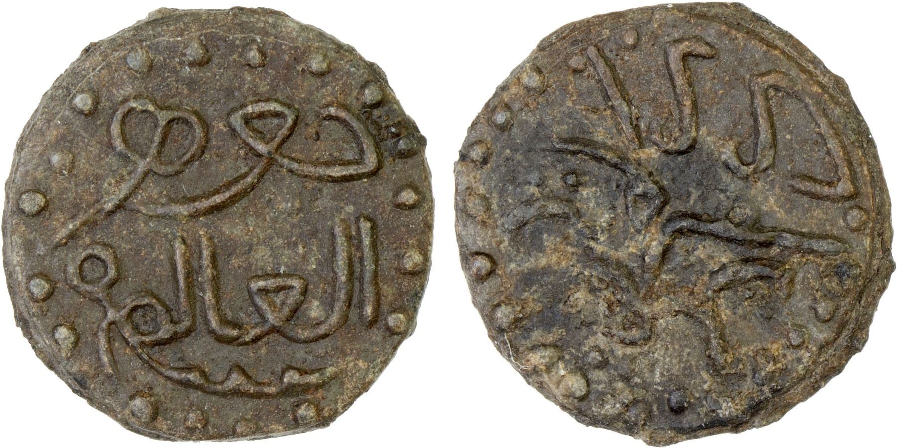 ACEH: Jauhar al-Alam Shah, first reign, 1795-1815, tin-lead pitis (1.79g), Teluk Samawi, AH1227, Millies-150, cf. Zeno-341211, jauhar al-'alam shah // teluq samawi 1226, reverse retrograde, wonderful bold inscriptions, VF-XF. This is the first example of this date we have handled.According to Millies (p.105), Teluk Samawi was the principal commercial port of Aceh and the main residence of the sultan for some years. It is likely that this type was made during the period when Teluk Samawi was the capital of Aceh Sultanate.