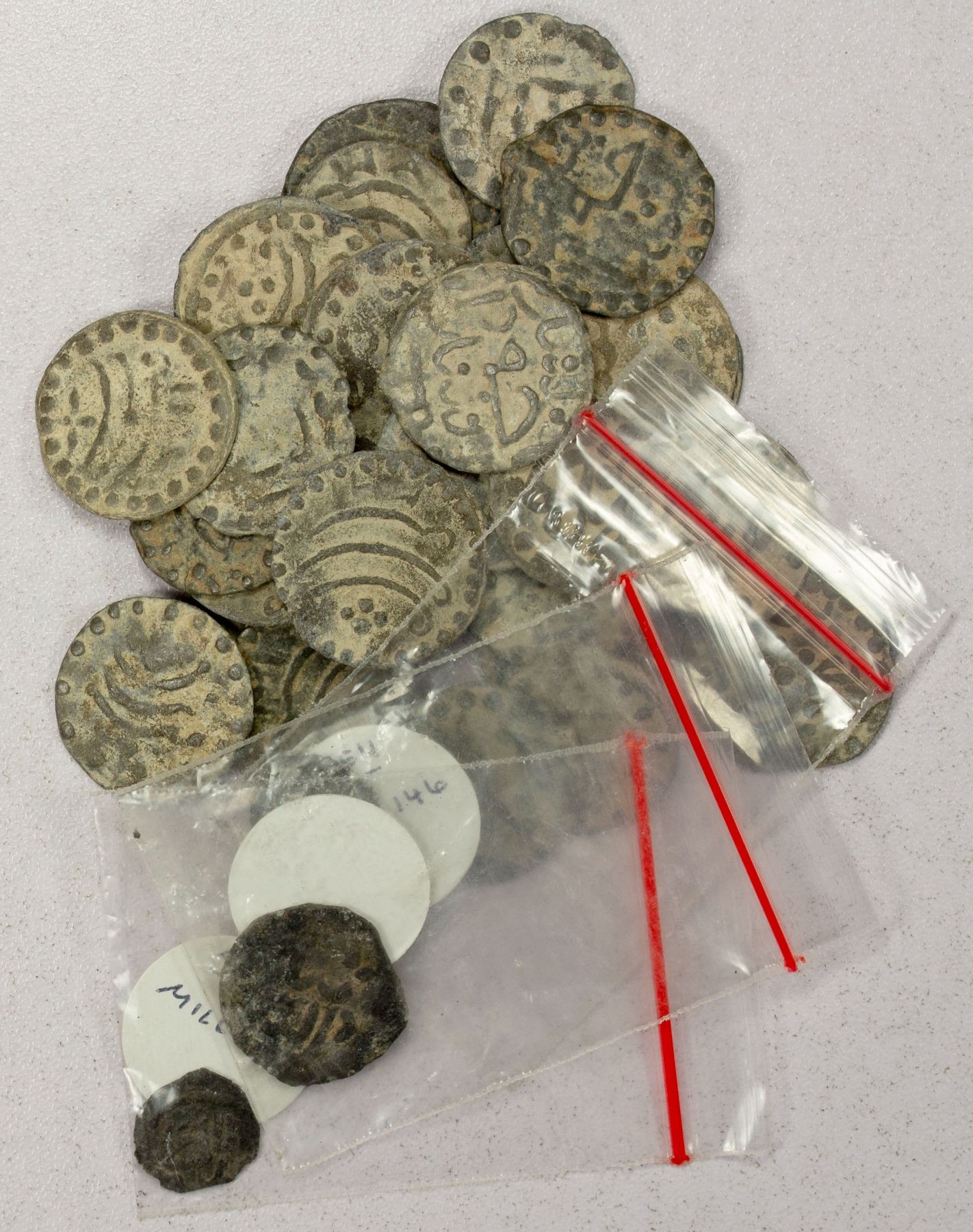 ACEH: LOT of 35 tin-lead pitis, most a few different types (Mitch-3092-94), plus three scarcer pieces (two Millies-146, Millies-149, and), a few with legible date in the AH1260's; average VF to VF+ conditions, some quite nice; retail value $400, lot of 35 pieces, ex Jürgen M. Wilmes Collection.