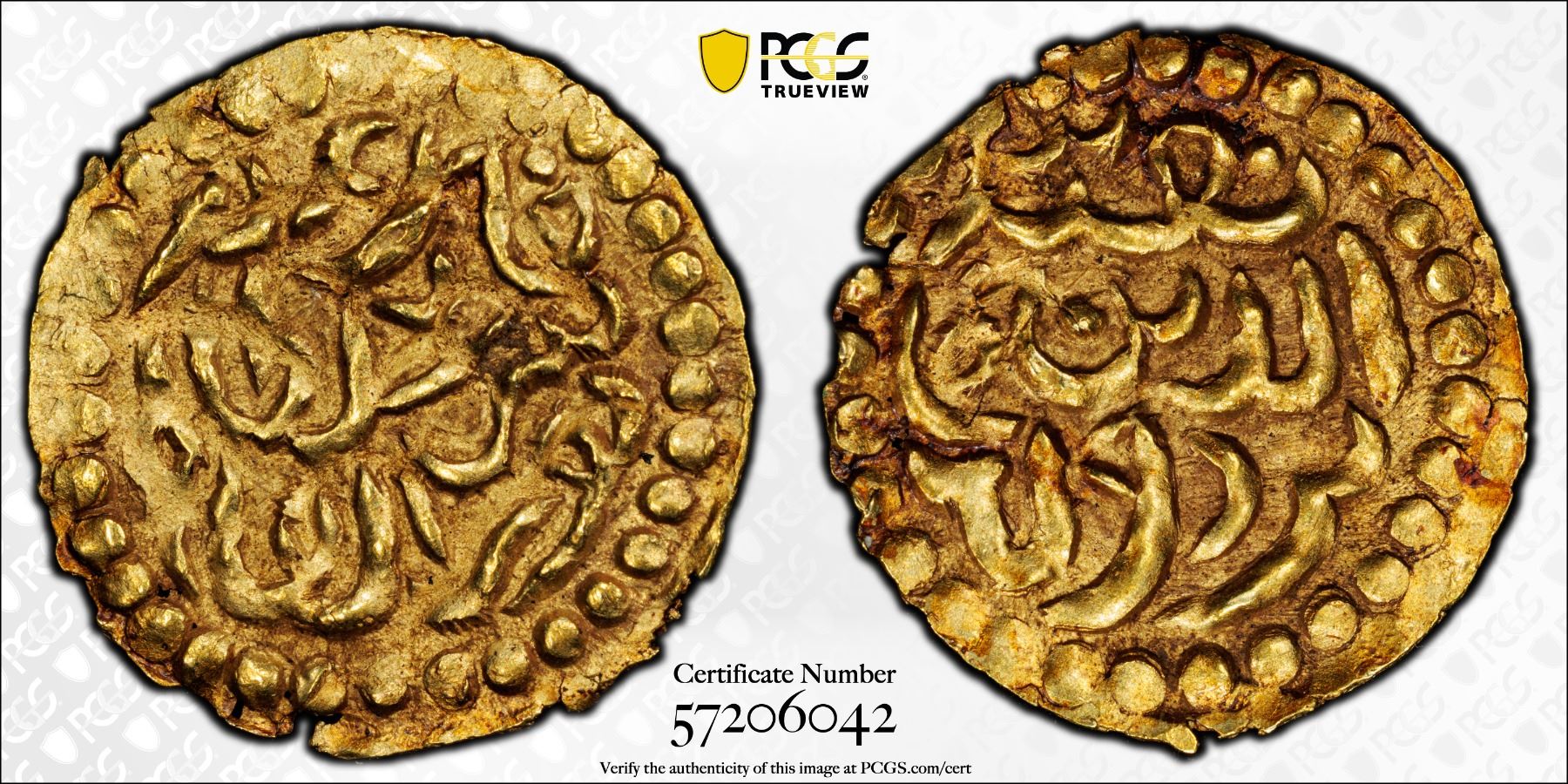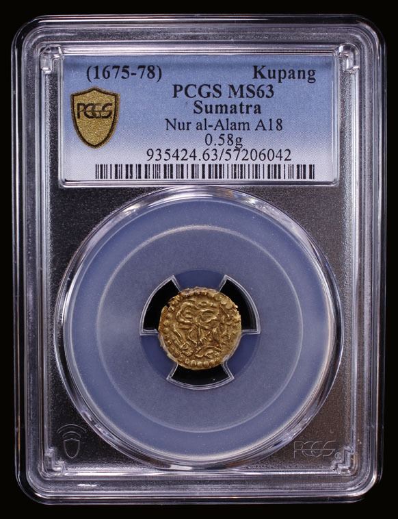ACEH: Nur al-Alam, 1675-1678, AV kupang (0.58g), Leyten-A18, a lovely mint state example! PCGS graded MS63, ex Jürgen M. Wilmes Collection.