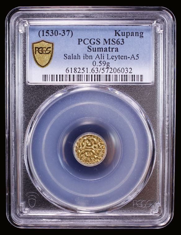 ACEH: Salah ibn Ali, 1530-1537, AV kupang (0.59g), Leyten-A5, a lovely mint state example! PCGS graded MS63, ex Jürgen M. Wilmes Collection.