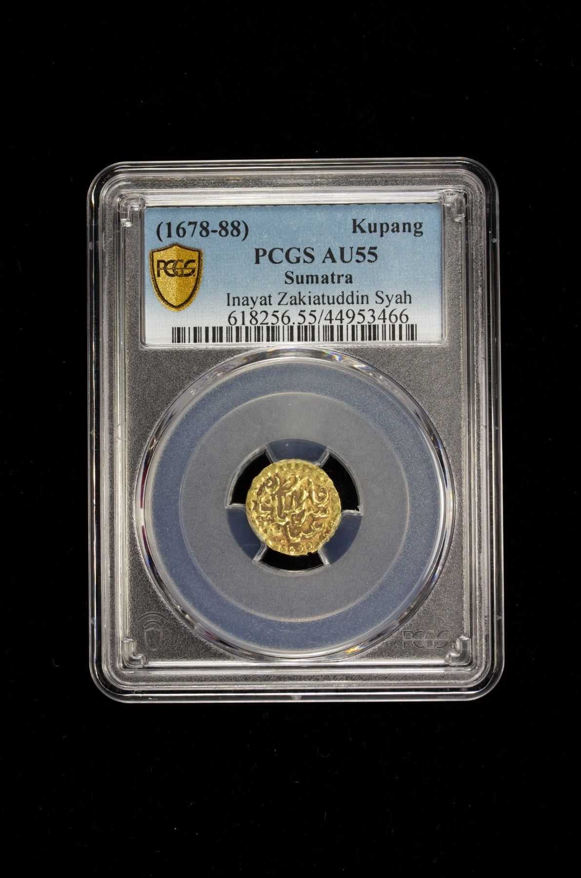 INDONESIA: ACEH: Zakiat al-Din Inayan Shah, 1678-1688, AV kupang, Leyten-A19, an attractive nearly mint state example, PCGS graded AU55.