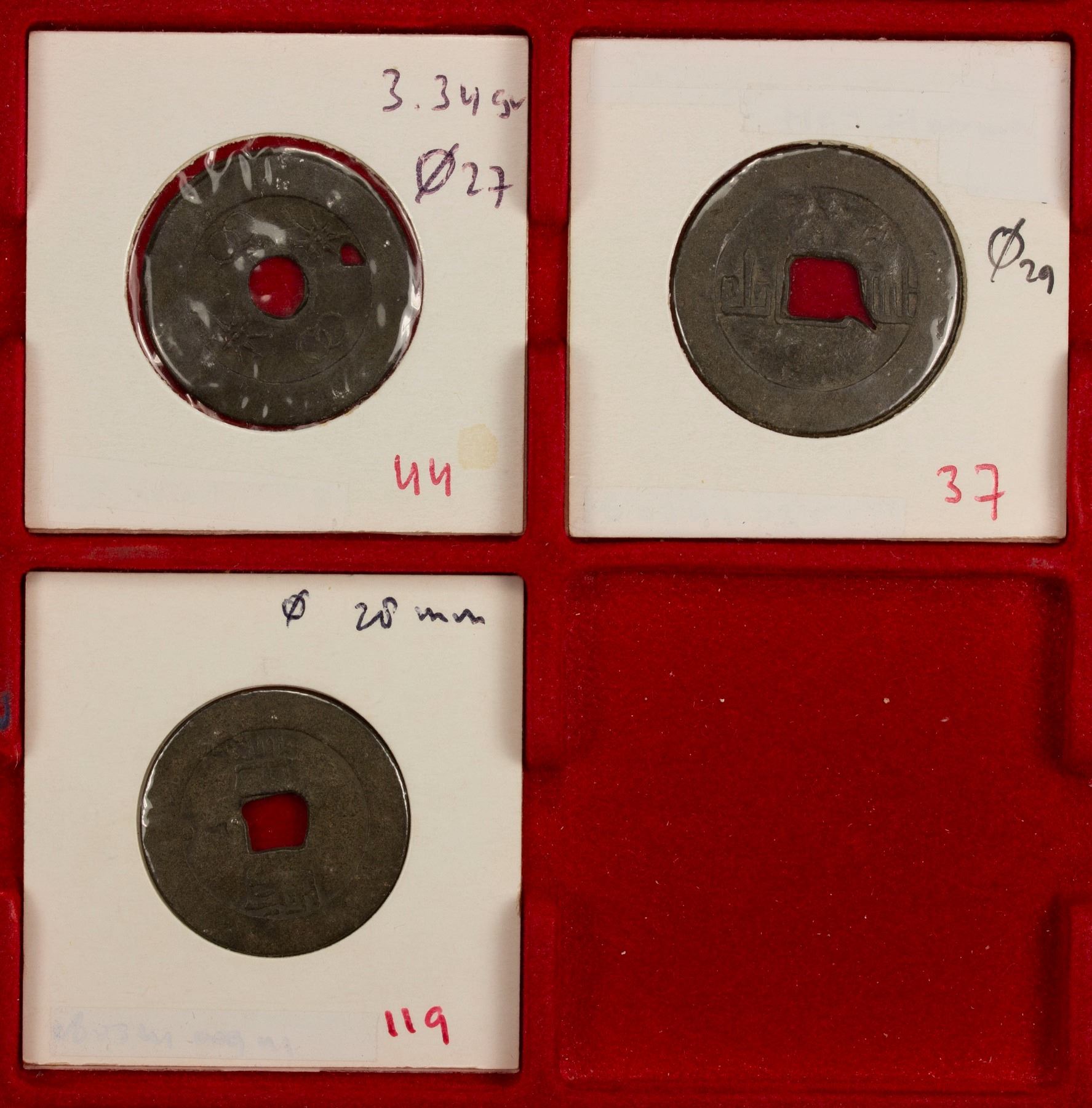 BANGKA ISLAND: LOT of 3 tin jokohs, including Harsono-100 (Guang Dao Ju Bao / Yuan Ji), 344 (Zheng Yong; casting hole), 346 (Zhong He Gong Zheng); VF+ to EF conditions, all with decent patina; retail value $120, lot of 3 pieces.