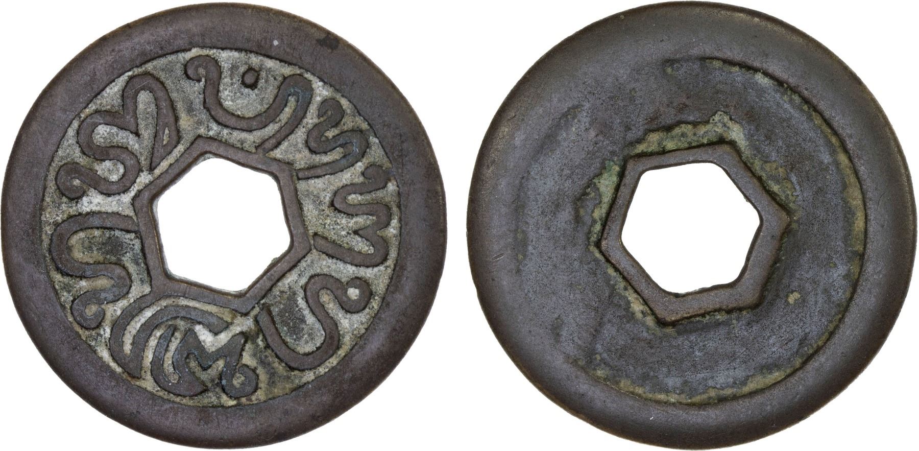 INDONESIA: BANTAM: Anonymous, AE cash (7.46g), ca. 1552-1596, Millies-112, pangeran ratou in Javanese script around hexagonal hole, uniface, VF, ex Jürgen M. Wilmes Collection.