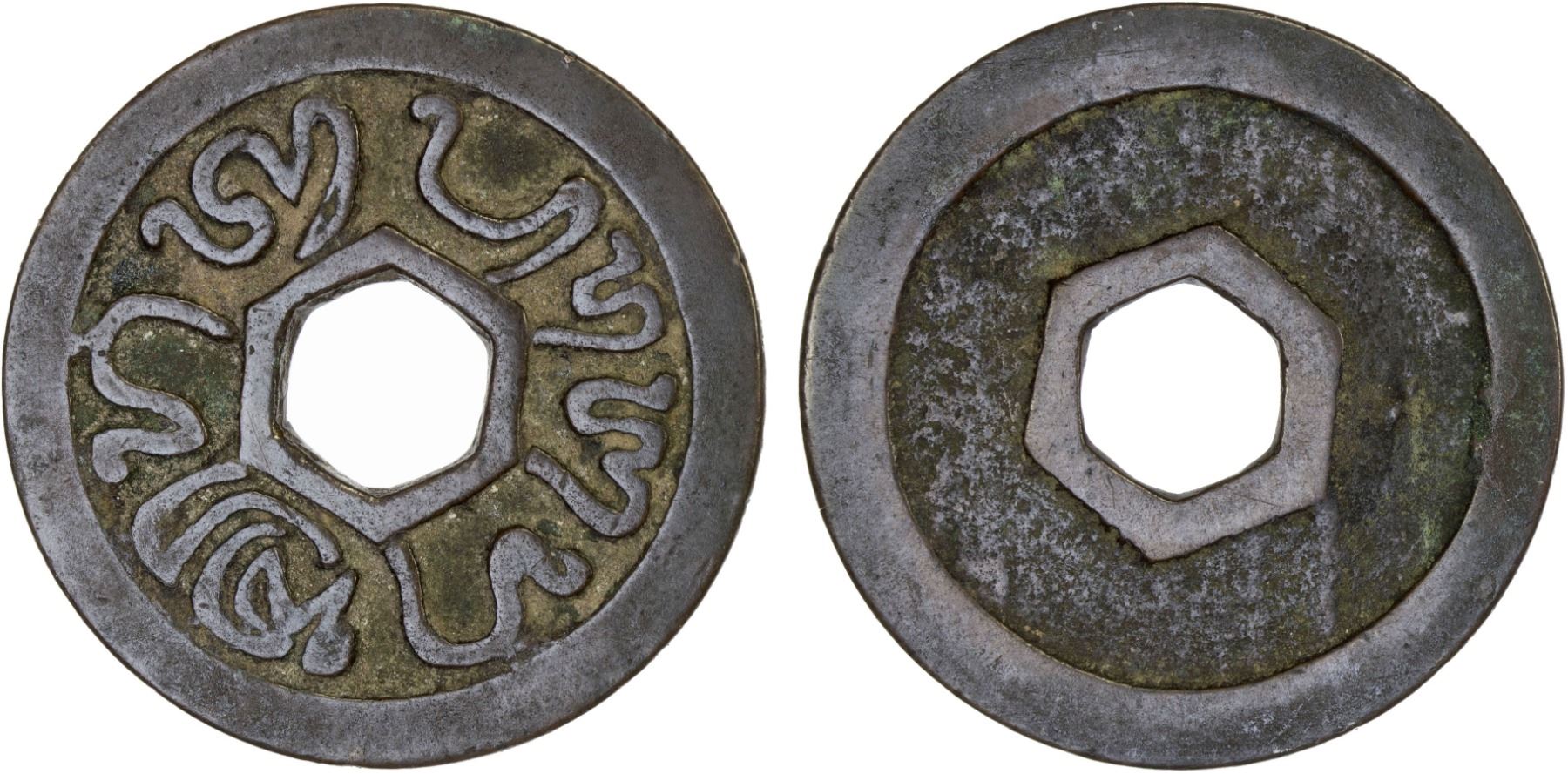 INDONESIA: BANTAM: Anonymous, AE cash (9.43g), ca. 1552-1596, Millies-112, pangeran ratou in Javanese script around hexagonal hole, uniface, attractive bold lettering and glossy patina, Choice VF, ex Jürgen M. Wilmes Collection.