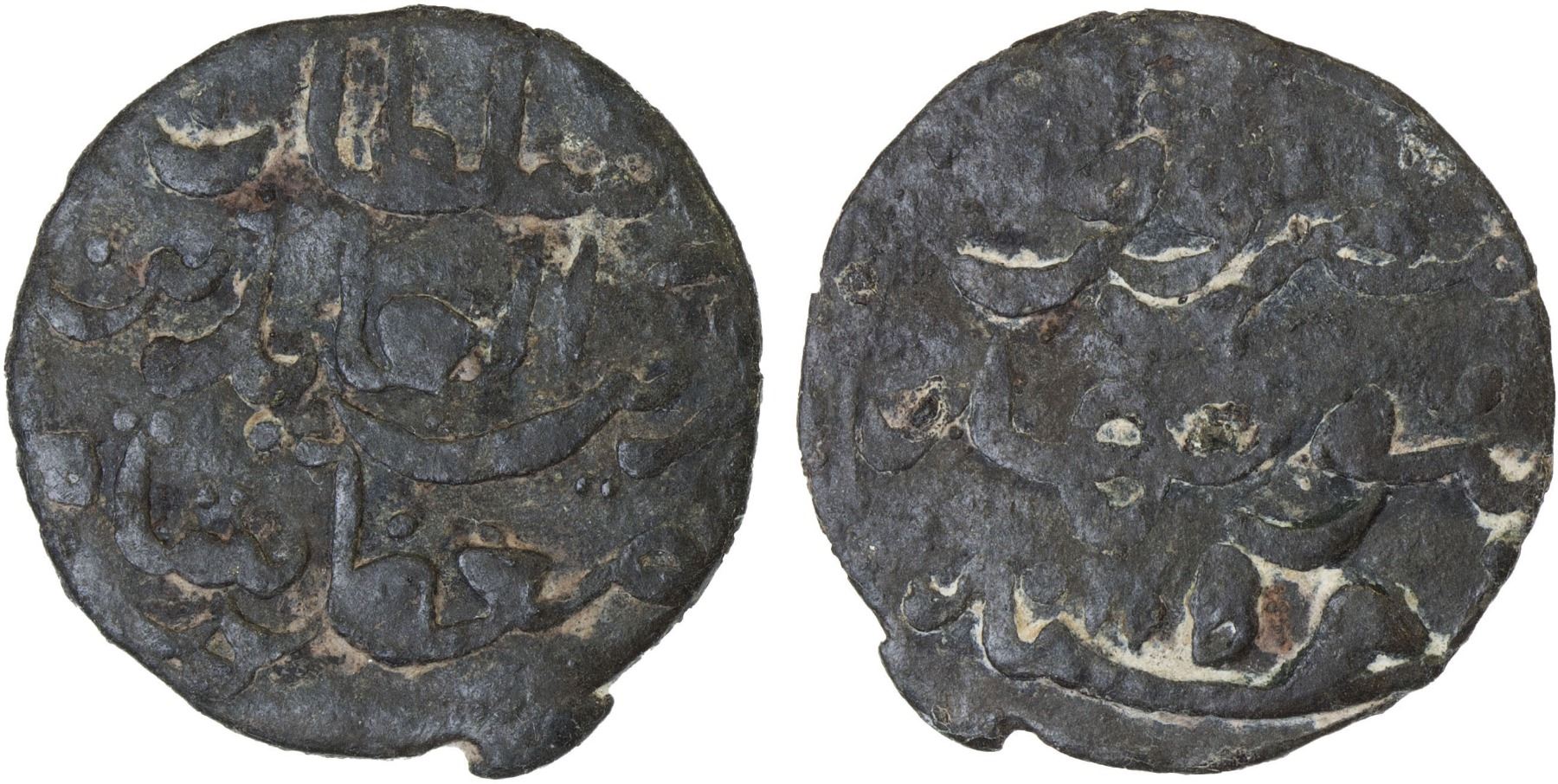 BATUBARA: Zain al-'Abidin, fl. 1745, tin pitis (1.89g), AH1158, cf. Zeno-275615, sultan / zain al-'abidin / mu'azzam shah // masruf / batu bahar / sanah 1158, clear date, VF.