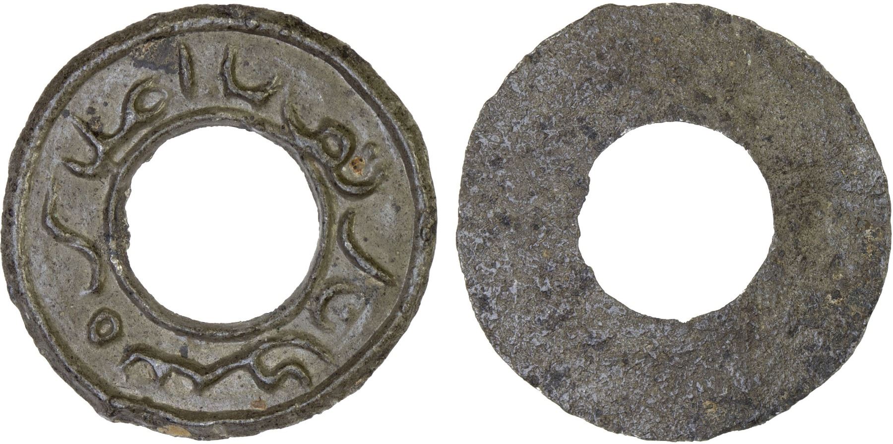 JAMBI: Anonymous, tin pitis (0.92g), after 1770, cf. Zeno-308429, Jawi inscription sultan ratu sri ingalaga, uniface, attractive glossy luster, Choice AU.