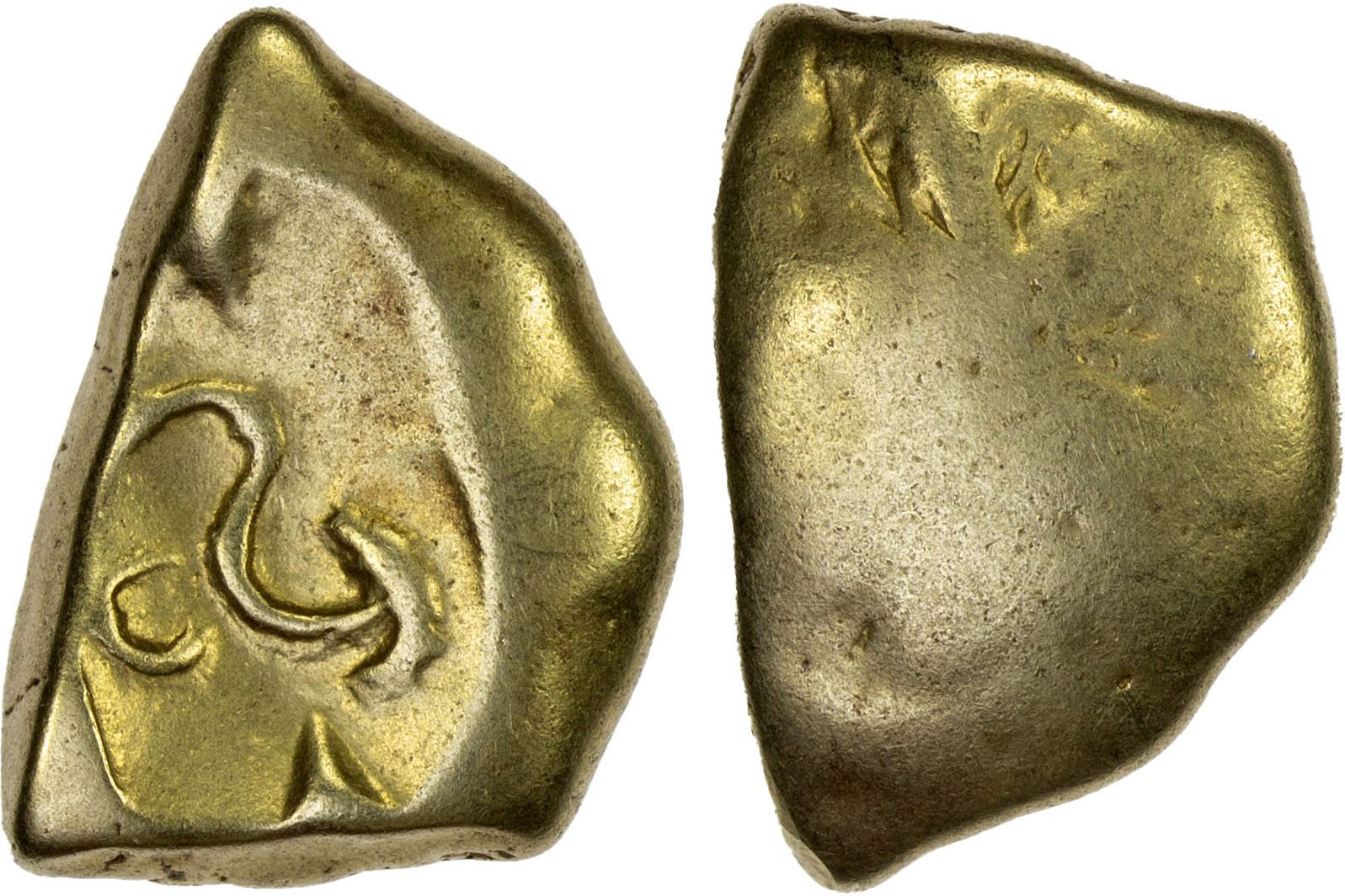INDONESIA: JAVA: Kingdom of Sailendra, AV fragment (6.91g), ca. 800-850, cf. Krisadaolarn-A701, cut from larger round unit with floral design stamped on the concave side (similar to the silver pieces of Mitch SEA-718ff), VF, ex Jürgen M. Wilmes Collection. Krisadaolarn attributes similar examples to the Srivijaya Kingdom.