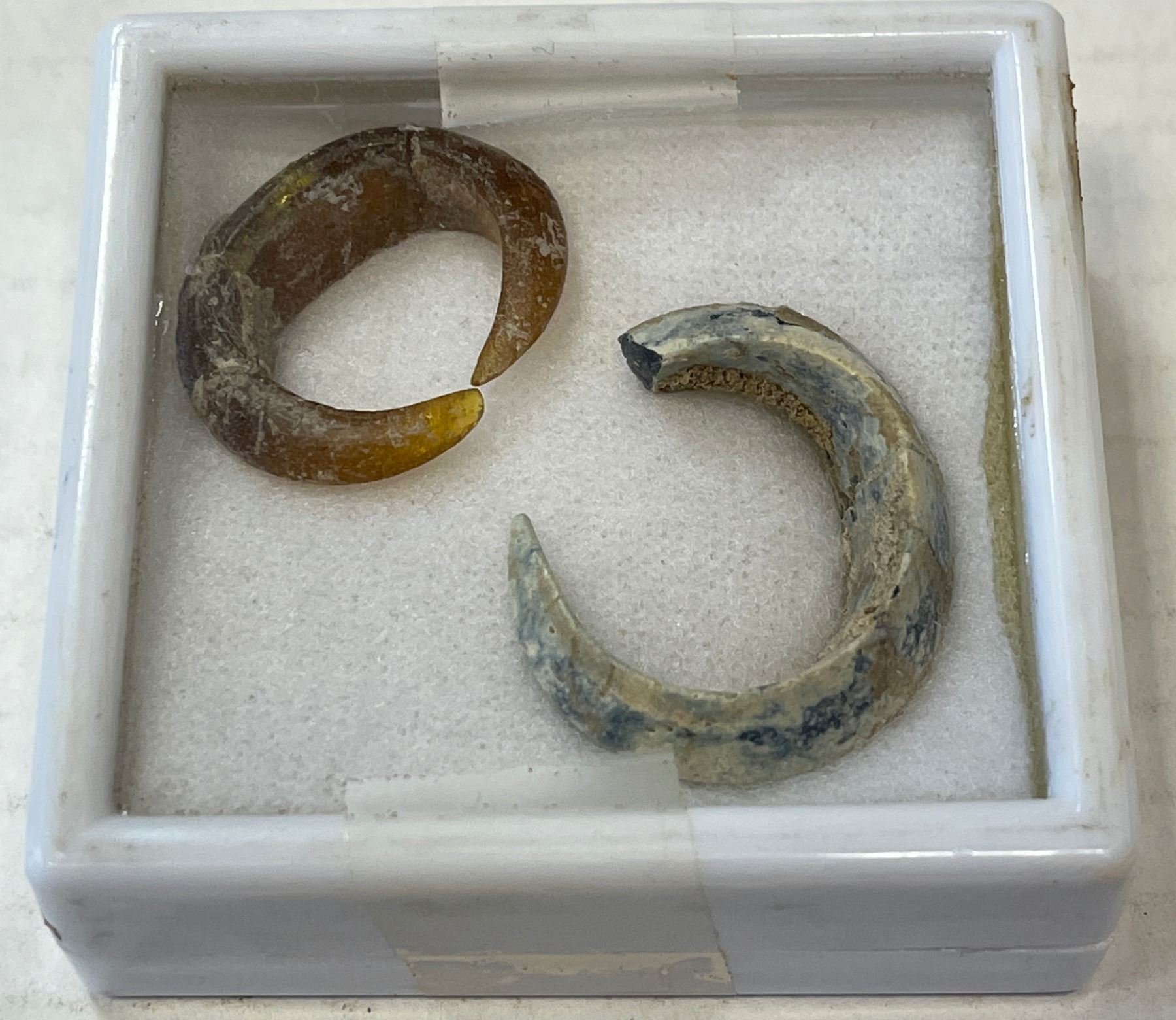 INDONESIA: JAVA:LOT of 2 java beads circa 1000 A.D., 1 ¾" x 1 ¾" very old patina, multi-color stripes, lot of 2 items, VF, R, ex Charles Opitz Collection.