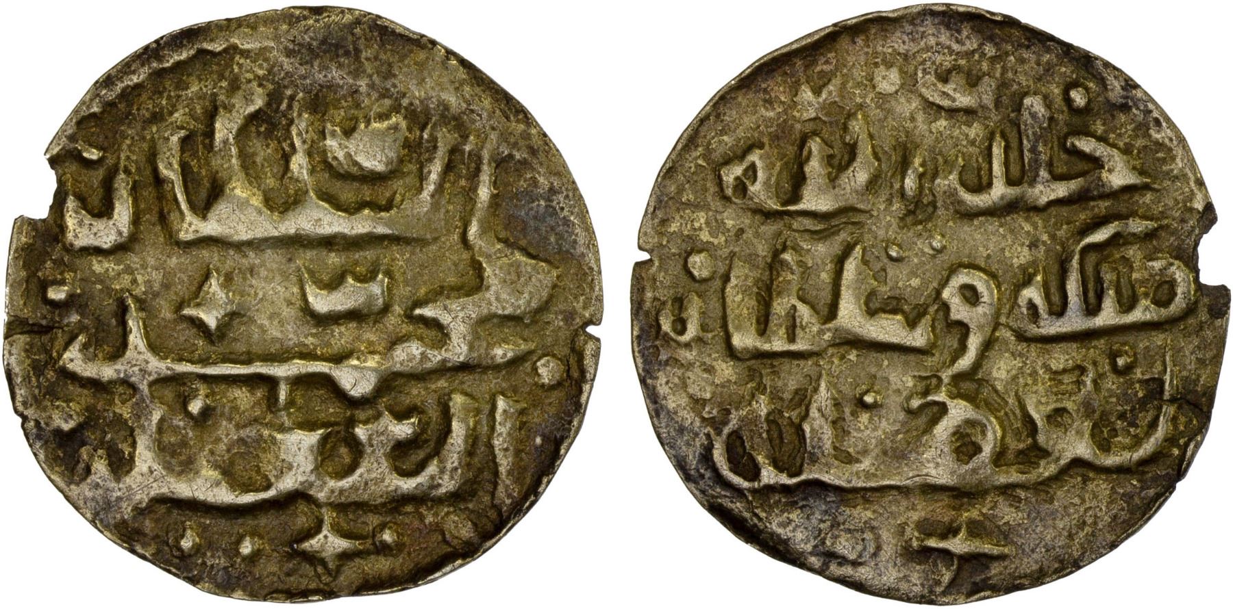 MACASSAR: Muhammad Sa'id, 1638-1653, AV mas (1.61g), cf. Millies-280, al-sultan muhammad al-sa'id // khallada Allah mulkahu wa sultanahu bi-fadlihi, likely a contemporary imitation struck in somewhat debased gold, tiny edge chip, lightly brushed, extremely rare denomination, Choice VF.