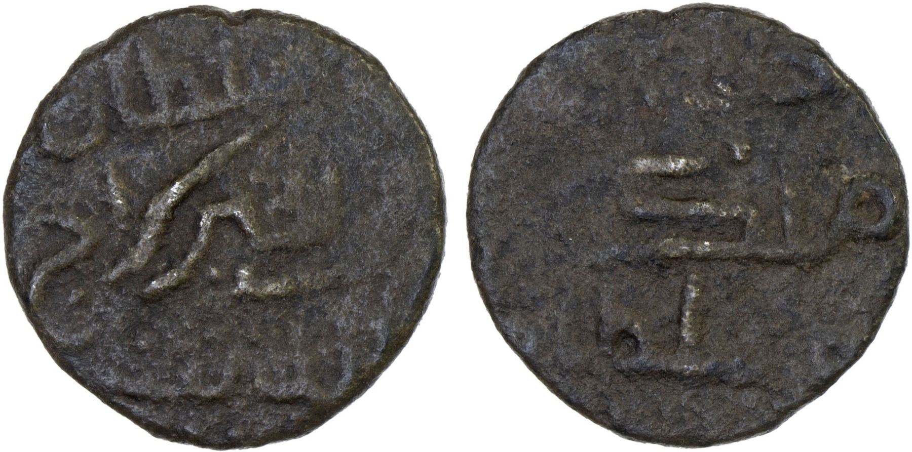 MACASSAR: Sirajuddin, 1712-1742, AE falus (1.45g), Millies-288, cf. Zeno-353480, sultan / abu(?) al-khair siraj / al-din // khallada allah / mulkahu / wa-sultanahu ("May Allah perpetuate his reign and sultanate"), extremely rare, F-VF. This is the first example of this ruler that we have encountered.