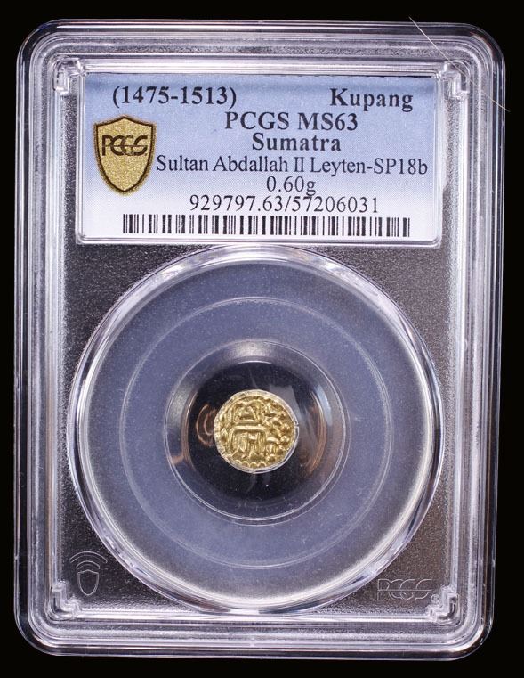 SAMUDRA-PASAI: Abdallah II, ca.1475-1513, AV kupang (0.60g), Leyten-SP18b, a lovely mint state example! PCGS graded MS63, ex Jürgen M. Wilmes Collection.