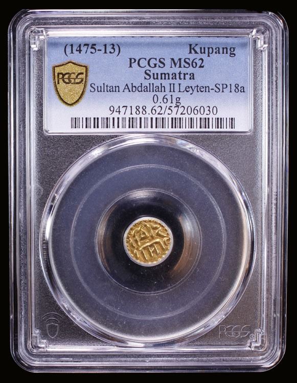 SAMUDRA-PASAI: Abdallah II, ca.1475-1513, AV kupang (0.61g), Leyten-SP18a, a pleasant mint state example, PCGS graded MS62, ex Jürgen M. Wilmes Collection.