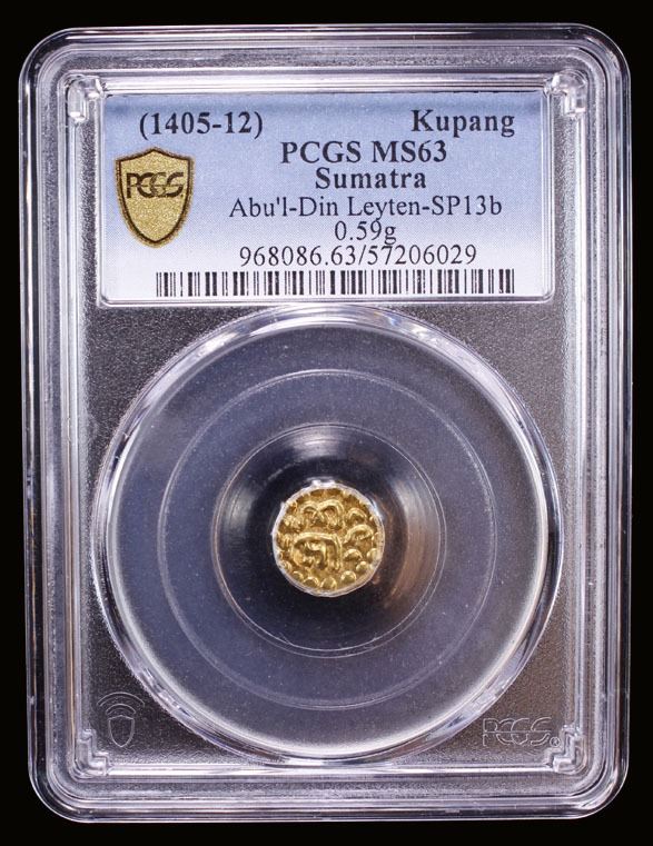 SAMUDRA-PASAI: Abu'l Din, ca. 1405-1412, AV kupang (0.58g), Leyten-SP13, a lovely mint state example! PCGS graded MS63, ex Jürgen M. Wilmes Collection.