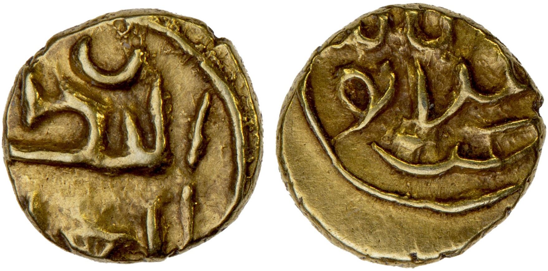 INDONESIA: SAMUDRA-PASAI: Ahmad I, ca. 1270-1295, AV 1/2 kupang (0.31g), Leyten-SP1c, ahmad malik al-zahir // al-sultan al-'adil, XF, ex Jürgen M. Wilmes Collection.