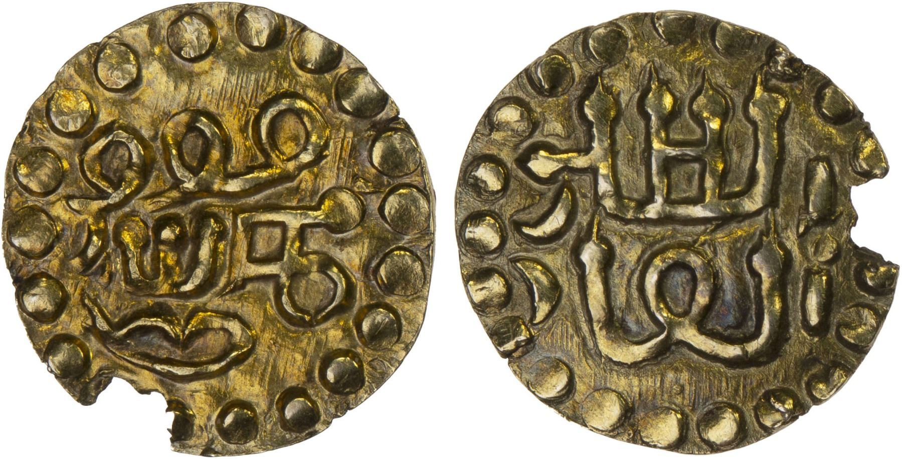INDONESIA: SAMUDRA-PASAI: Mu'min, early 16th century, AV kupang (0.32g), Leyten-SP20, mu'min malik al-tahir // al-sultan al-'adil, small peripheral chip, extremely rare, XF, ex Jürgen M. Wilmes Collection. Leyten states that it is not known who this sultan was other than the coins bearing his name. As the recorded weights of his coins (between 0.34g and 0.40g) are by far the lowest, it is assumed that Mu'min was the last ruler of Samudra Pasai to issue coins.