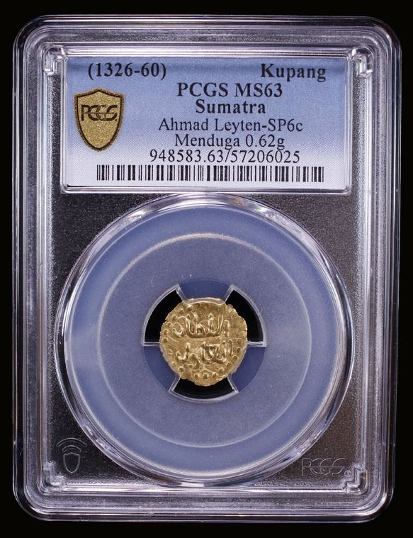 SAMUDRA-PASAI: Sultan Ahmad II, ca. 1326-1360, AV kupang (0.63g), Leyten-SP6c var, a lovely mint state example! PCGS graded MS62, ex Jürgen M. Wilmes Collection.