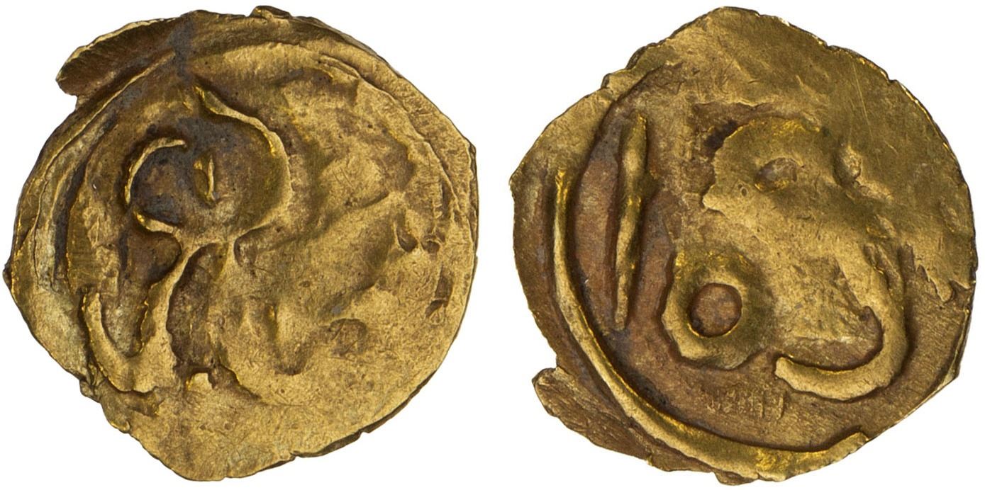 INDONESIA: SAMUDRA-PASAI: Uncertain Ruler, ca. 13th century, AV 1/4 kupang (0.14g), Leyten--, cf. Zeno-102795 & 102798, uncertain word on obverse (read as Munawar by one source) // za-hir, partial weakness, unpublished and very rare, XF, ex Jürgen M. Wilmes Collection.