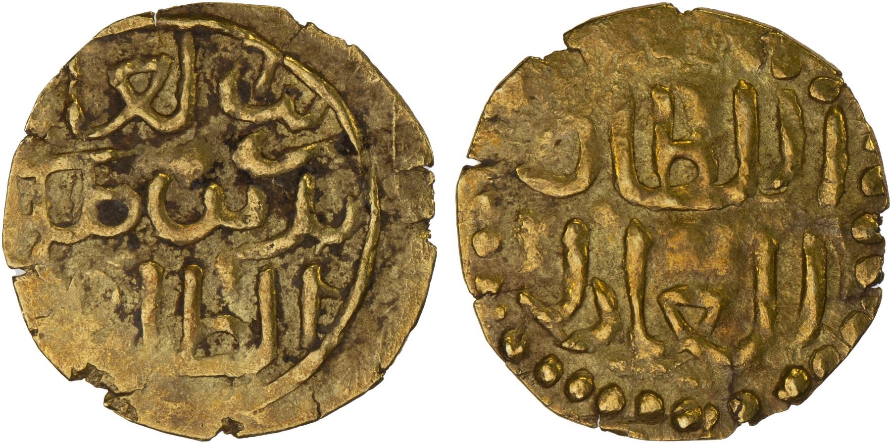 INDONESIA: SAMUDRA-PASAI: Zain al-Abidin I, ca. 1360-1370, AV kupang (0.57g), Leyten-SP7b, zayn al-'abidin // al-sultan al-'adil, struck on a broader and thinner planchet, XF, ex Jürgen M. Wilmes Collection. This distinct type was struck after the sultanate relocated to a place called Menduga in the wake of Ahmad II's defeat by the Majapahit Empire.