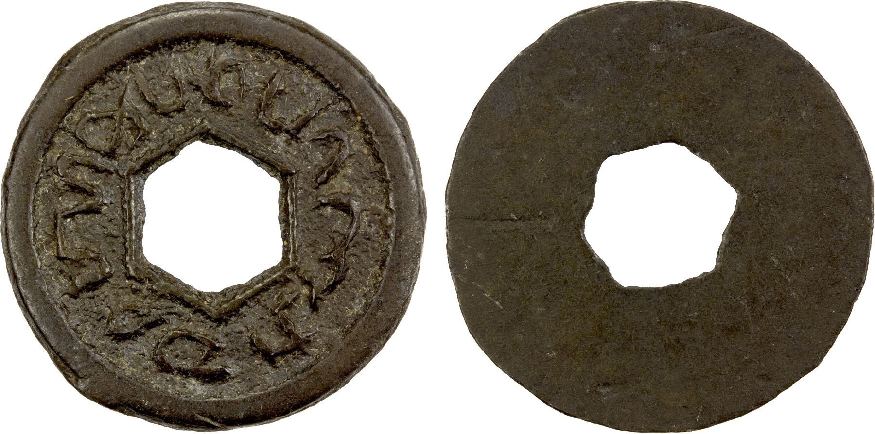 INDONESIA: SIAK: Anonymous, tin pitis (2.92g), ca. 1610-1620's, Mitch-24 (ONS-213), sultan siyak in Sumatra-Javanese script (reading counterclockwise) around hexagonal hole, uniface, bold lettering, VF-EF.
