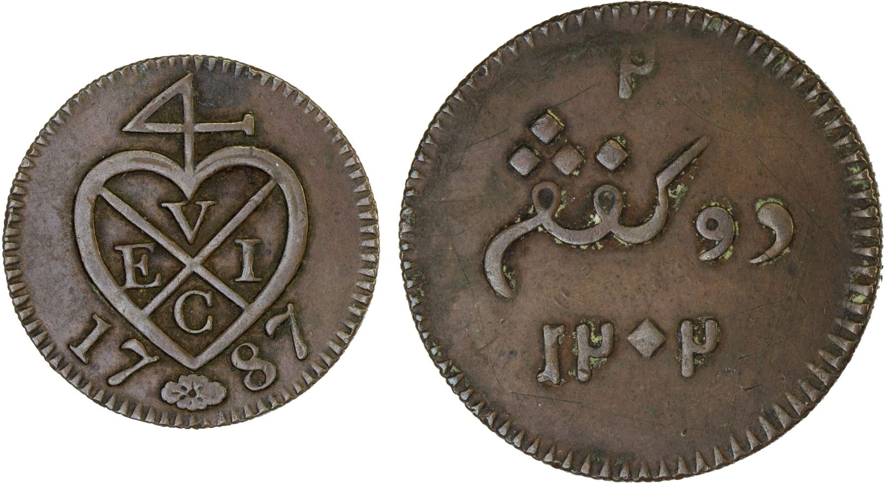 SUMATRA: AE 2 keping, 1787/AH1204, KM-258, East India Company issue struck at the Soho mint, Birmingham, milled edge, XF.