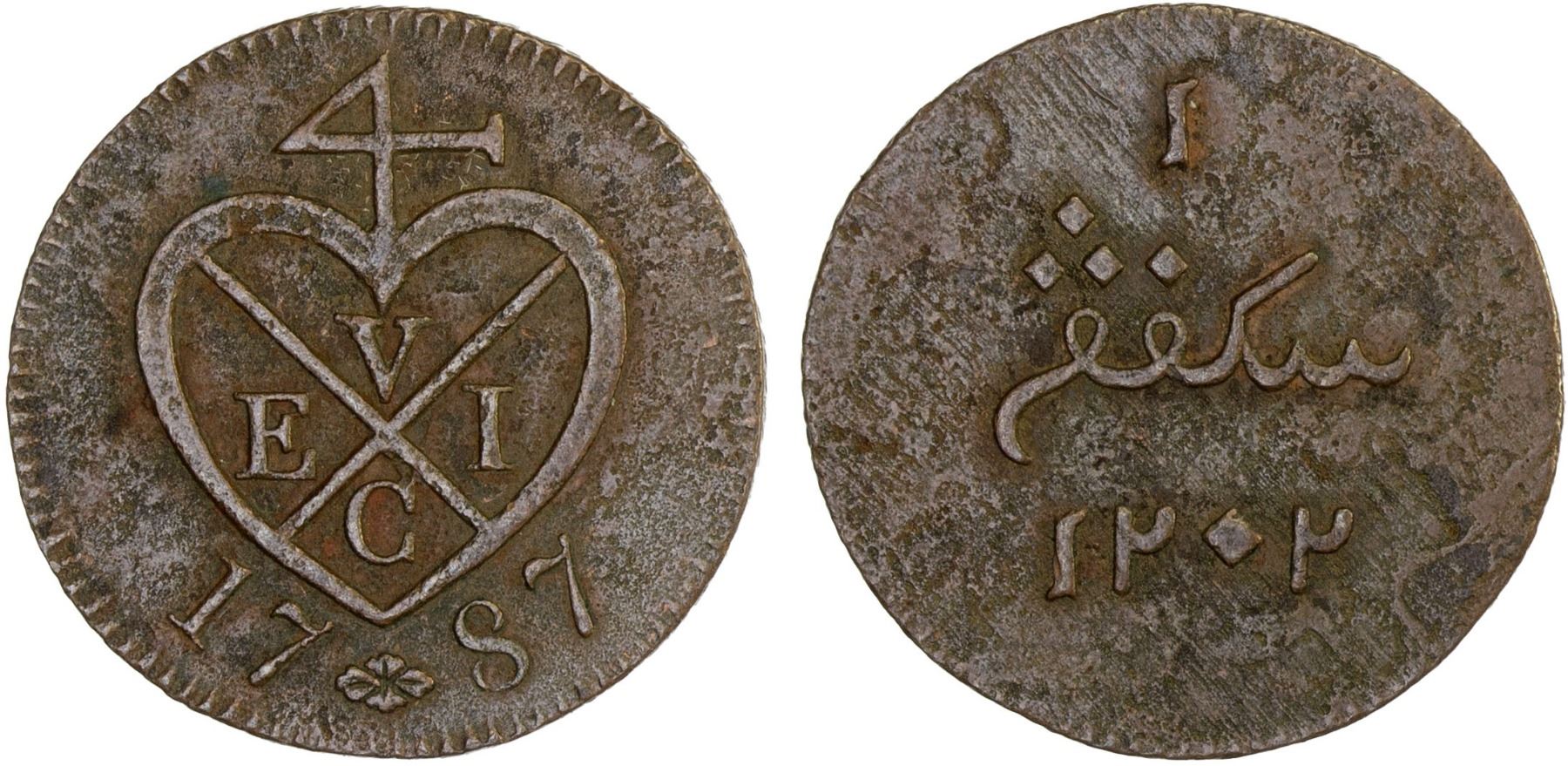 SUMATRA: AE keping, 1787/AH1202, KM-257.1, East India Company issue struck at the Soho mint, Birmingham, oblique edge milling, light surface roughness, XF.
