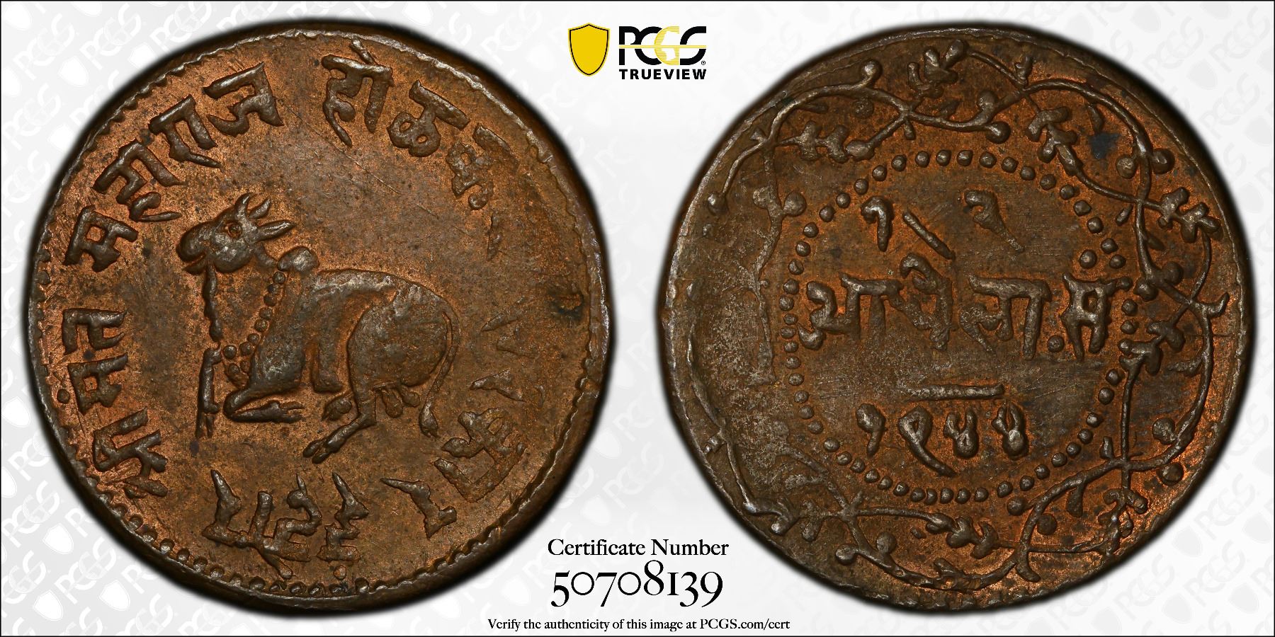 INDORE: Shivaji Rao, 1886-1903, AE 1/2 paisa, VS1944 (1887), PCGS MS62 BN
