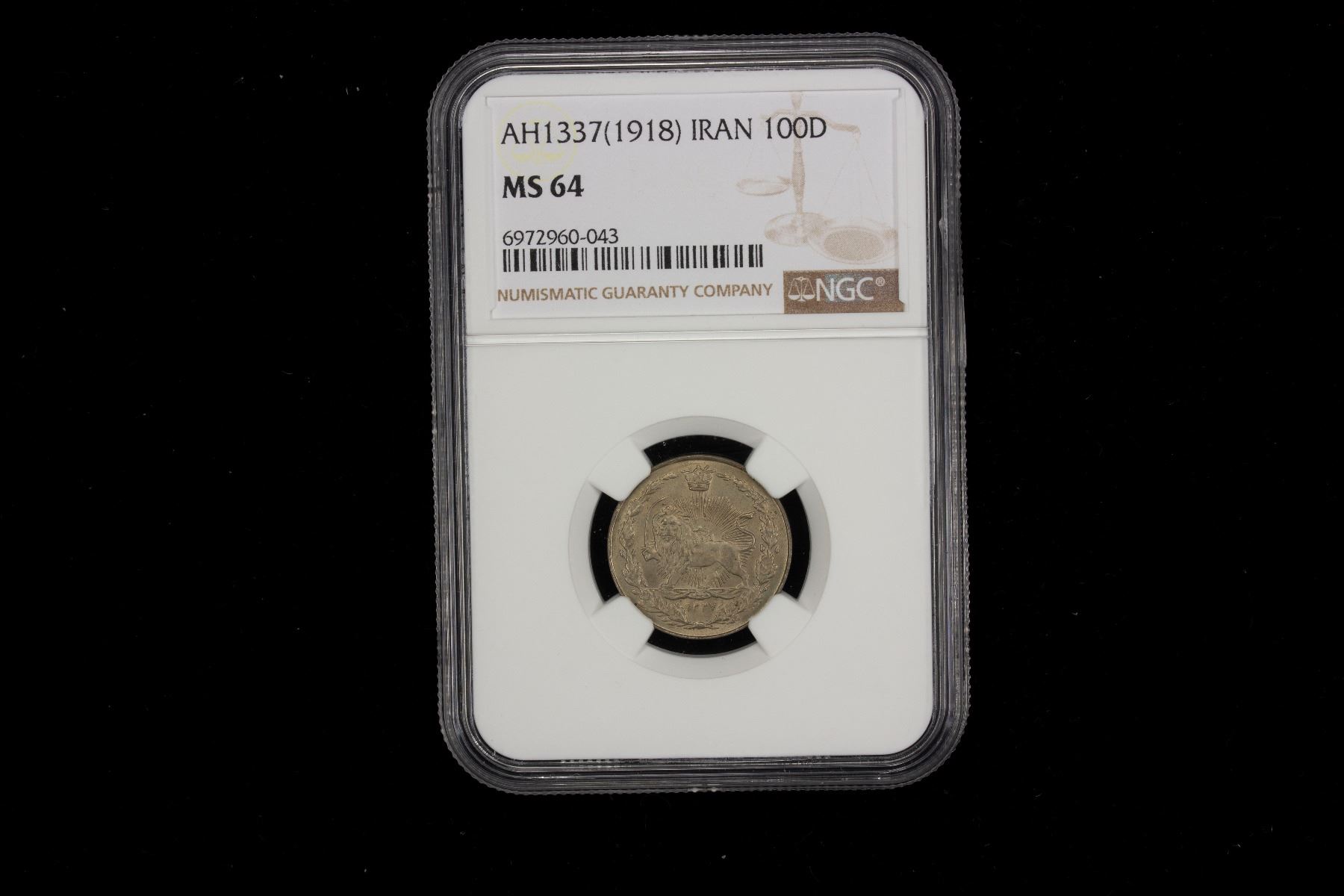 IRAN: Ahmad Shah, 1909-1925, 100 dinars, AH1337, KM-1092, better date, a wonderful lustrous example! NGC graded MS64.