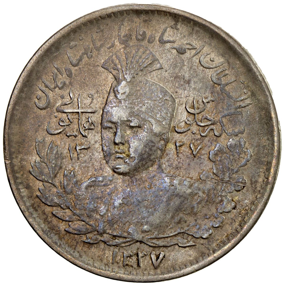 IRAN: Ahmad Shah, 1909-1925, AR 1000 dinars, AH1337, KM-1058, commemorative for the 10th Year of his Reign, EF.