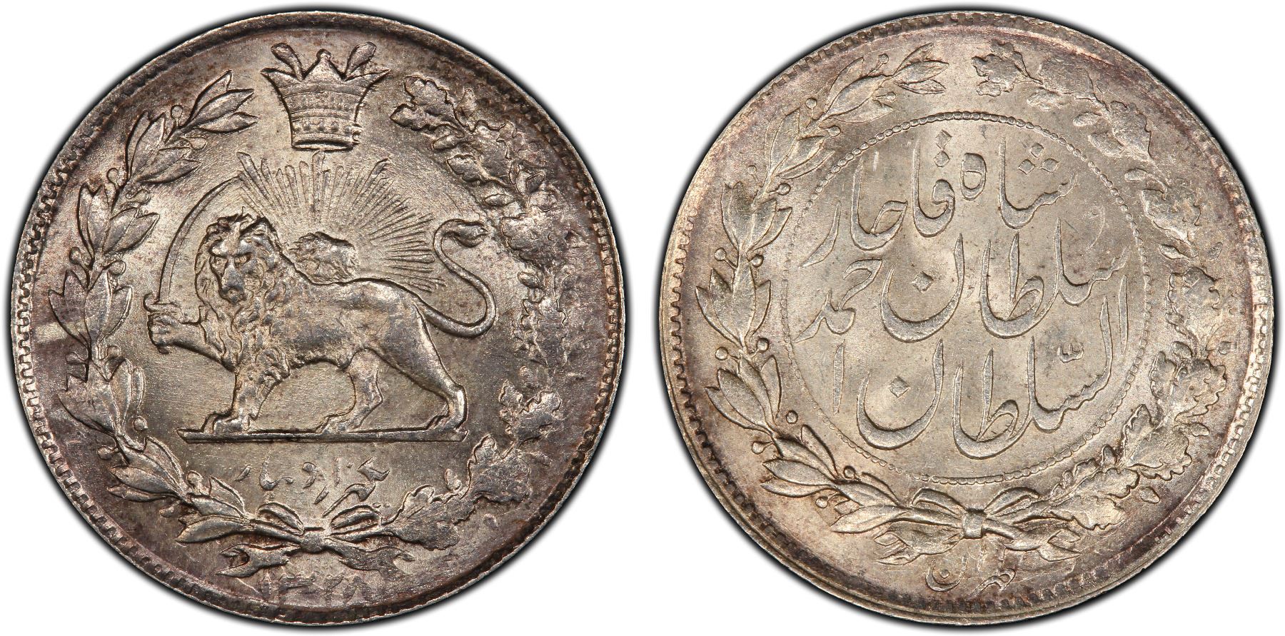IRAN: Ahmad Shah, 1909-1925, AR 1000 dinars, Tehran, AH1328, PCGS MS65