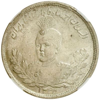 IRAN: Ahmad Shah, 1909-1925, AR 2000 dinars, AH1343, Y-1057, NGC graded MS63.