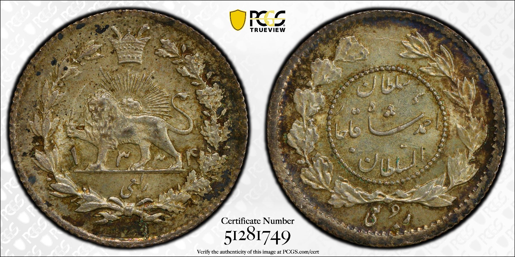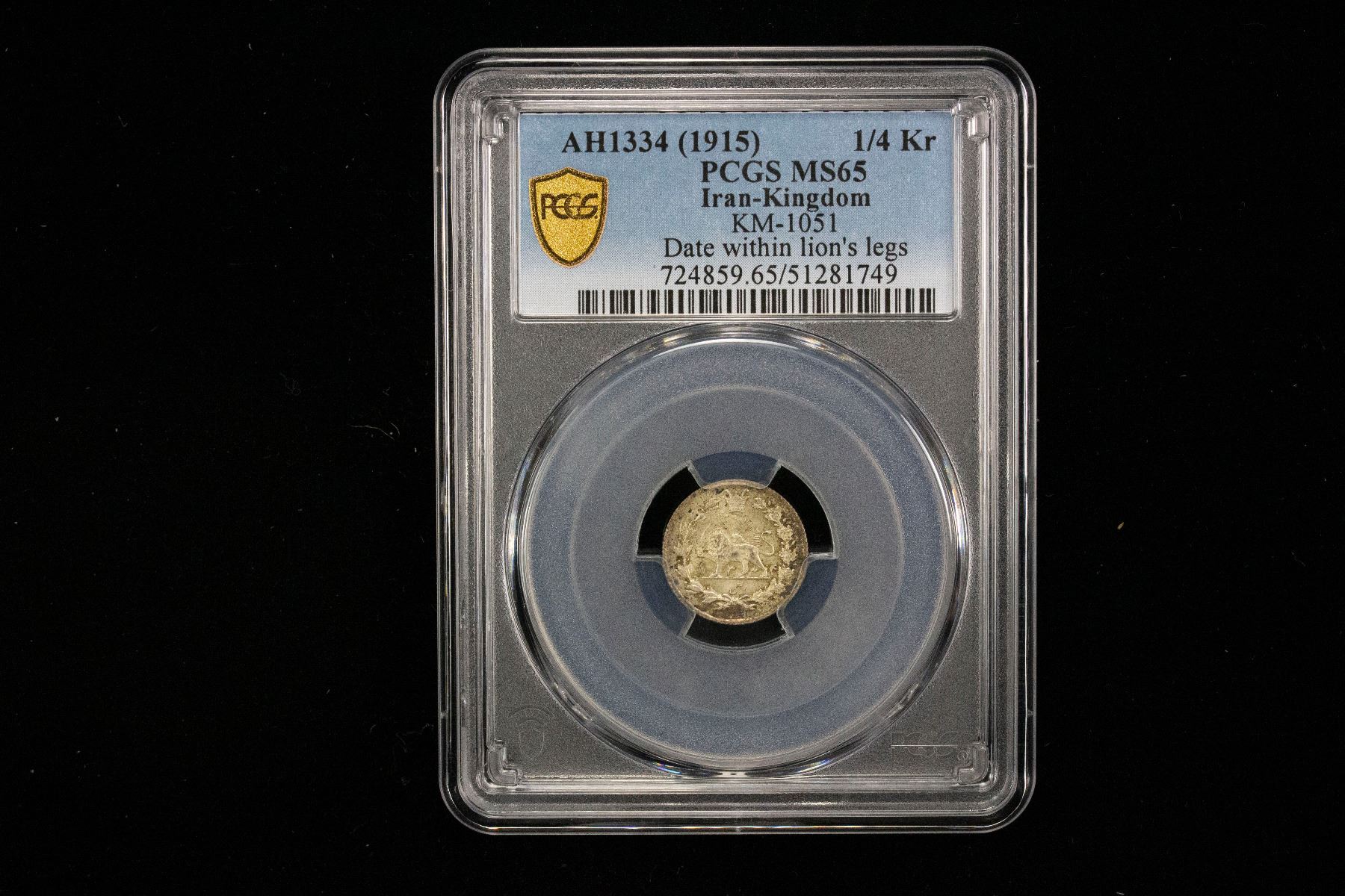 IRAN: Ahmad Shah, 1909-1925, AR rob'i (1/4 kran), AH1334, KM-1051, a superb mint state example! PCGS graded MS65.