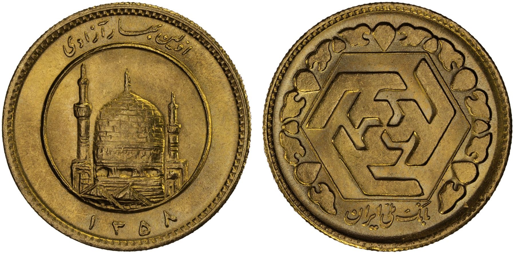 IRAN: Islamic Republic, AV azadi, SH1358, KM-1240, first issue, with the obverse phrase ivalin bihar-e azadi ("first spring of freedom"), BU.