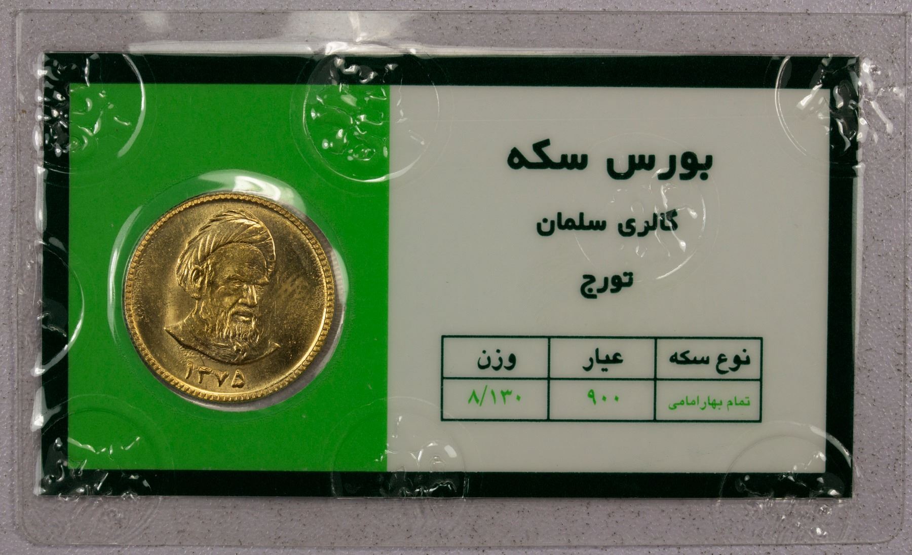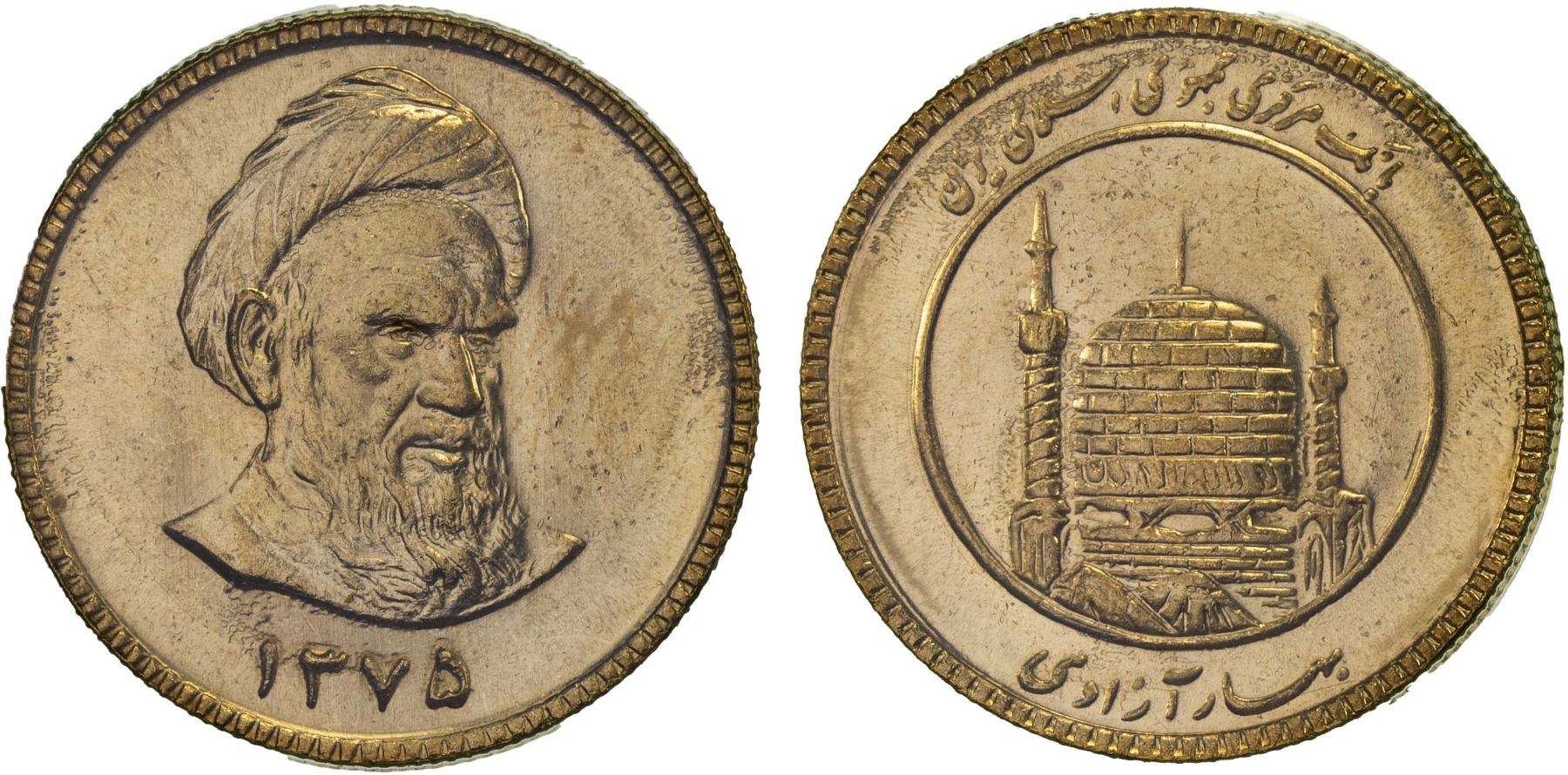 IRAN: Islamic Republic, AV azadi, SH1375, KM-1264, third issue, with the bust of the Ayatollah Khomeini, sealed in a folder by the Salman Gallery Company, BU.