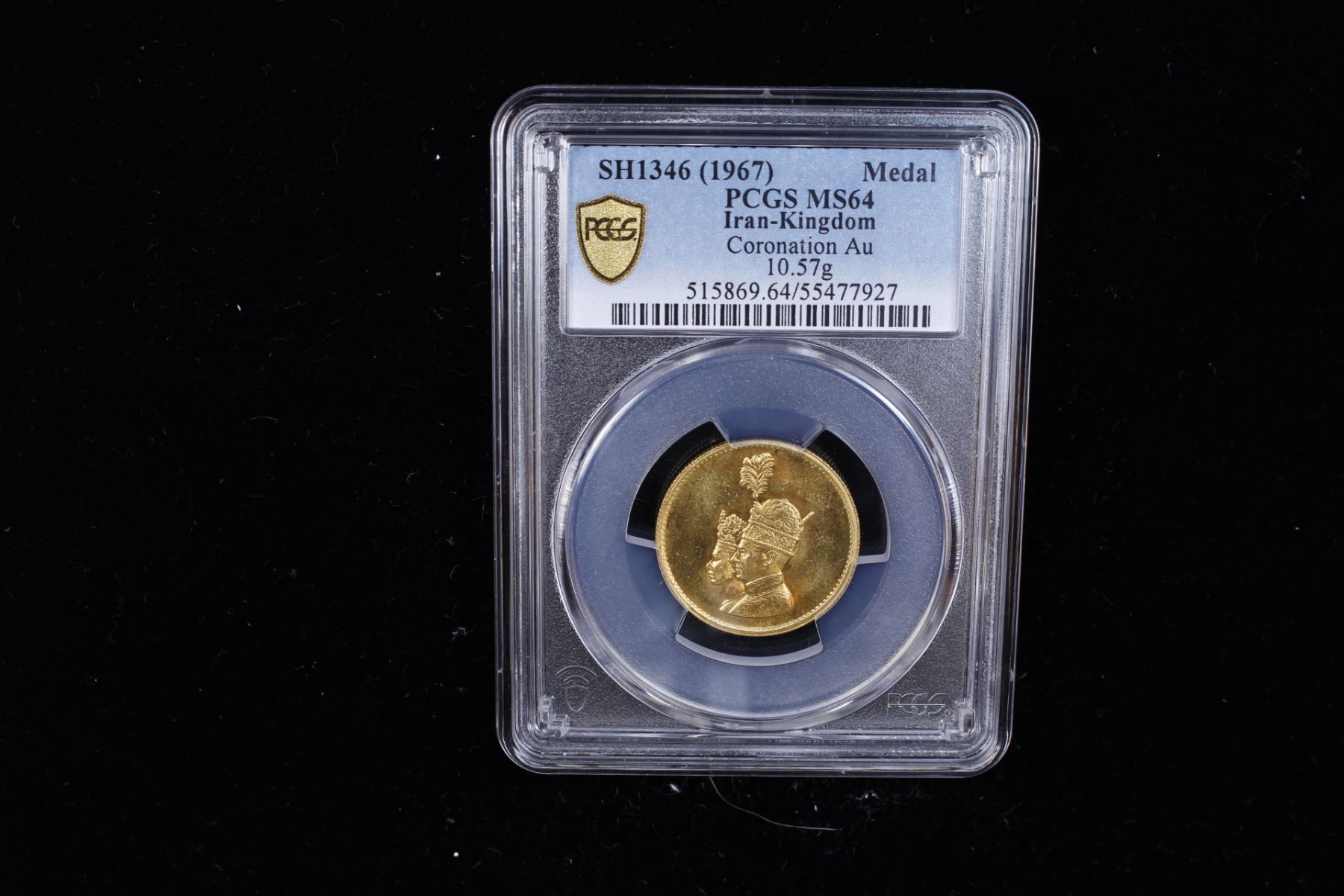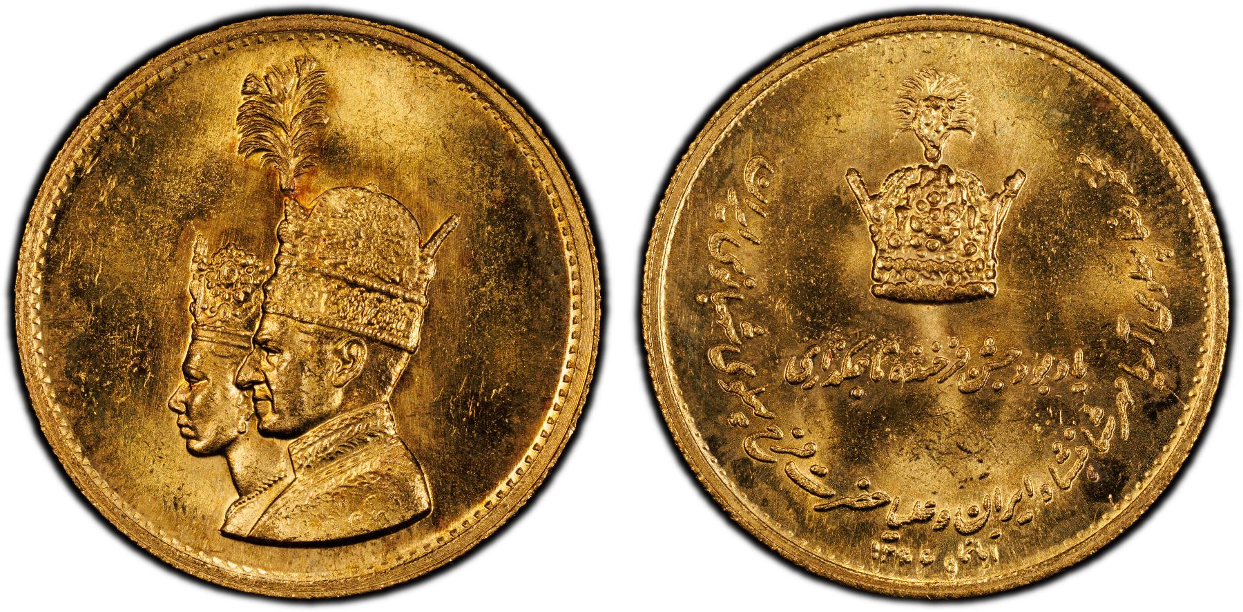 IRAN: Mohammad Reza Shah, 1941-1979, AV medal (10.57g), SH1346 (1967), Imperial Coronation 1967 - Mohammad Shah and Queen Farah jugate portrait, a wonderful lustrous example! PCGS graded MS64.