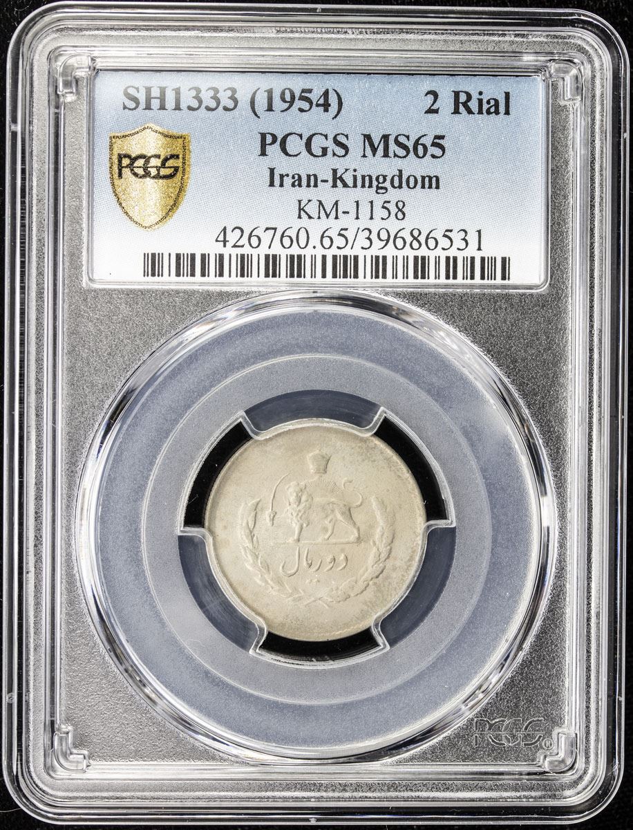 IRAN: Muhammad Reza Shah, 1941-1979, 2 rials, SH1333, KM-1158, a superb example for this short lived type! PCGS graded MS65.