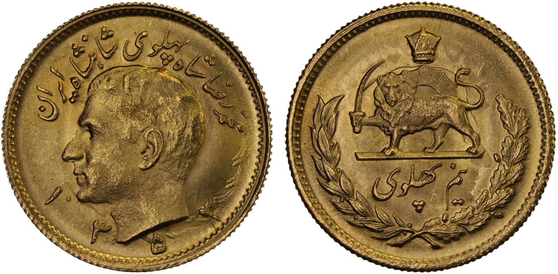 IRAN: Muhammad Reza Shah, 1941-1979, AV 1/2 pahlavi, SH1353, BU