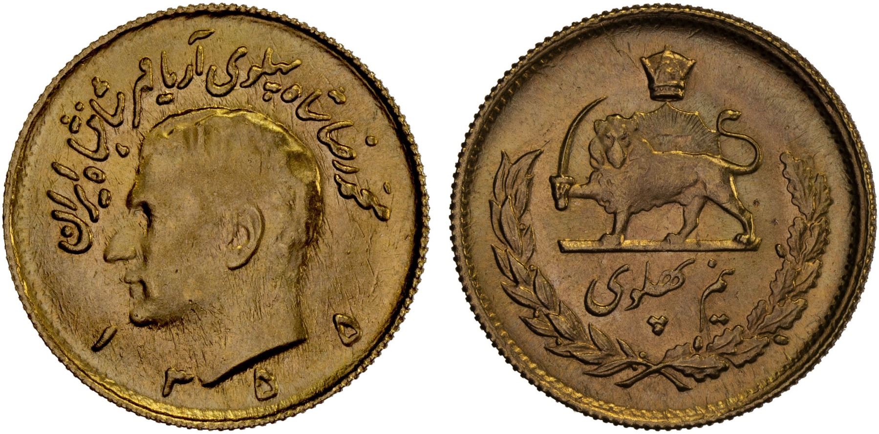 IRAN: Muhammad Reza Shah, 1941-1979, AV 1/2 pahlavi, SH1355, BU