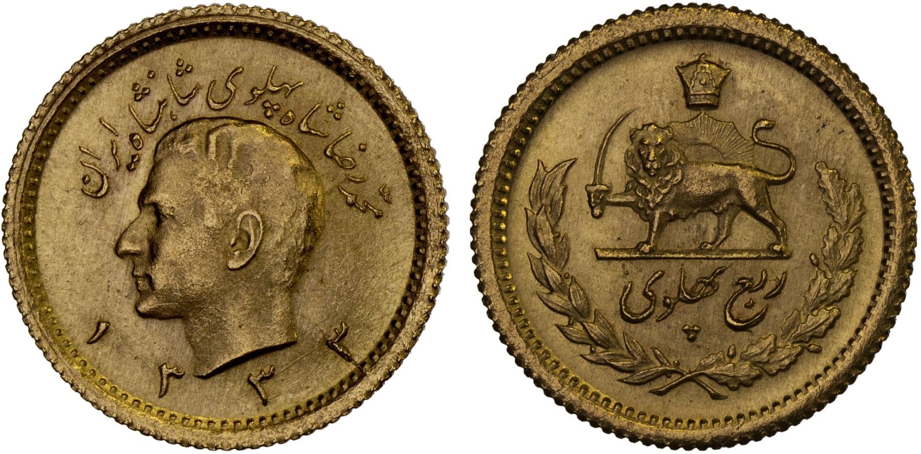 IRAN: Muhammad Reza Shah, 1941-1979, AV 1/4 pahlavi, SH1333, BU