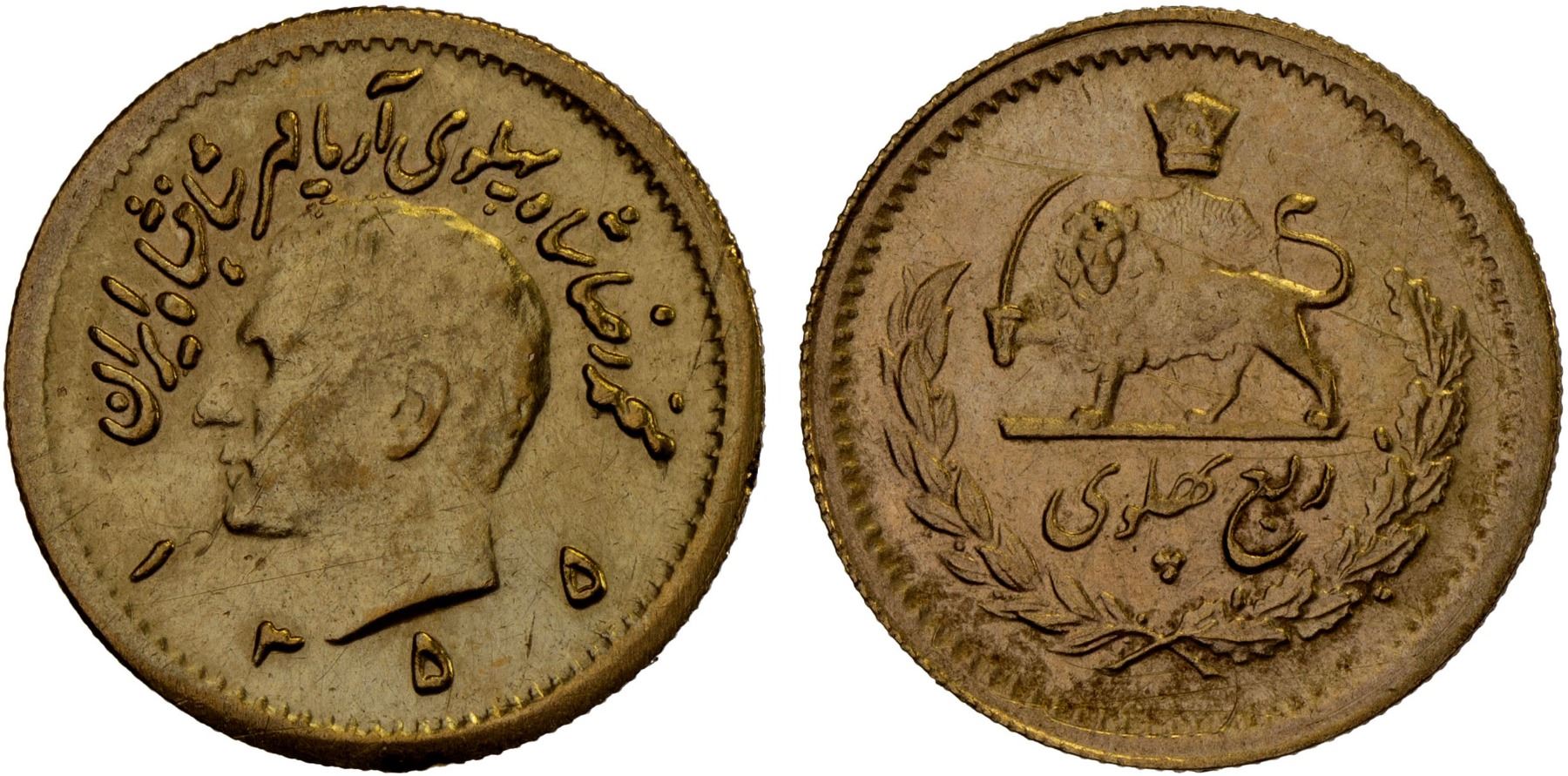 IRAN: Muhammad Reza Shah, 1941-1979, AV 1/4 pahlavi, SH1355, BU