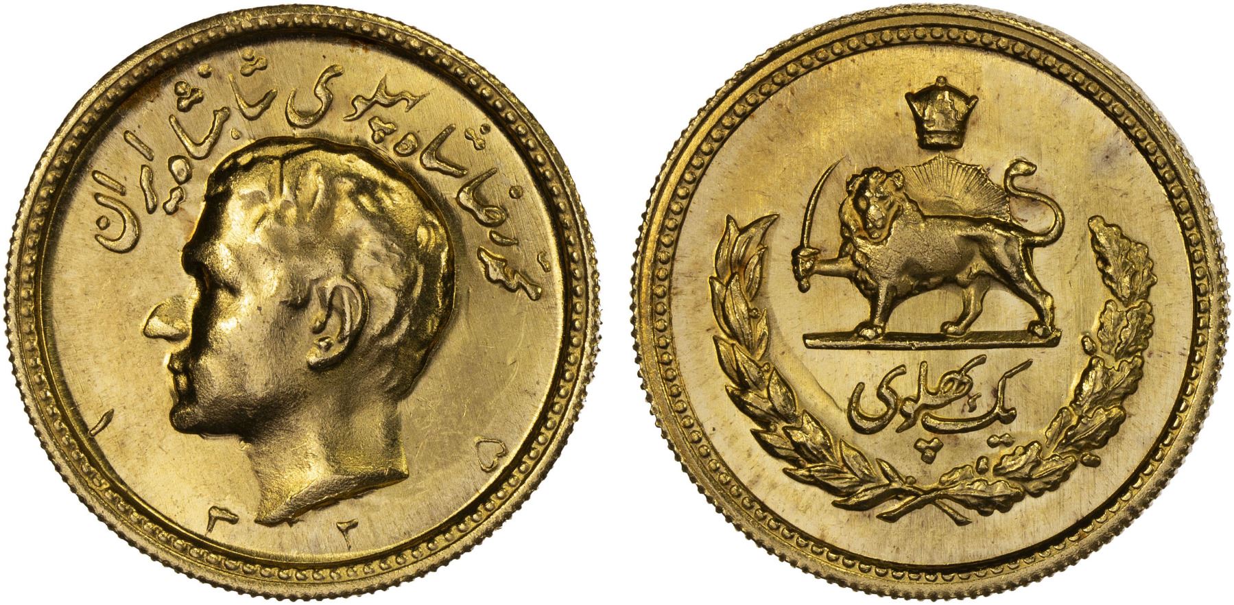 IRAN: Muhammad Reza Shah, 1941-1979, AV pahlavi (8.15g), SH1325, KM-1150, high relief, Unc.