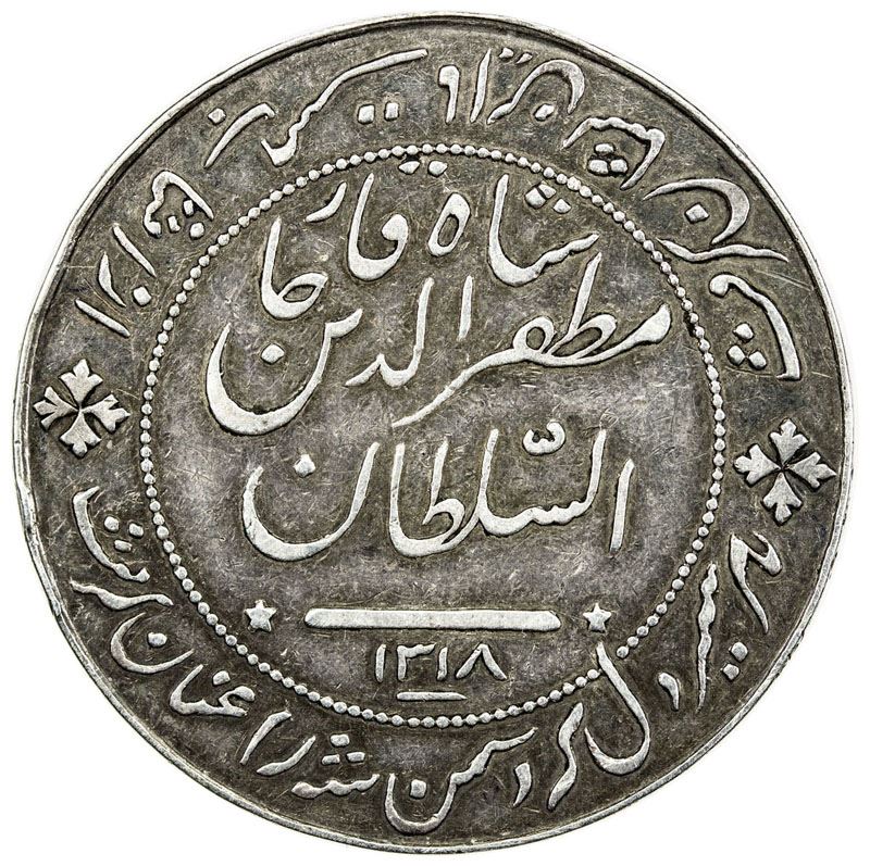 IRAN: Muzaffar al-Din Shah, 1896-1907, AR medal, AH1318, Rabino-Pl46 #68, "Medal of Valor", mount removed as usual, VF.