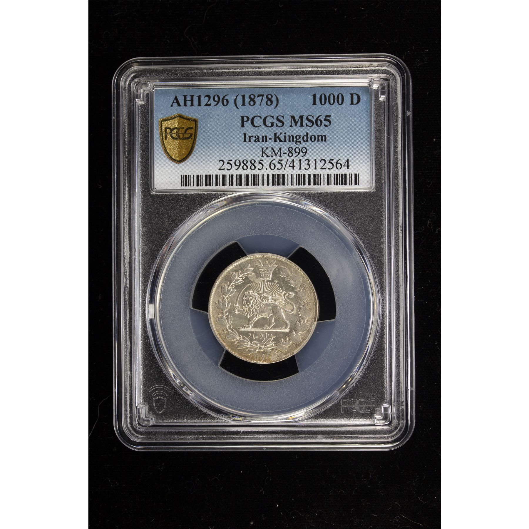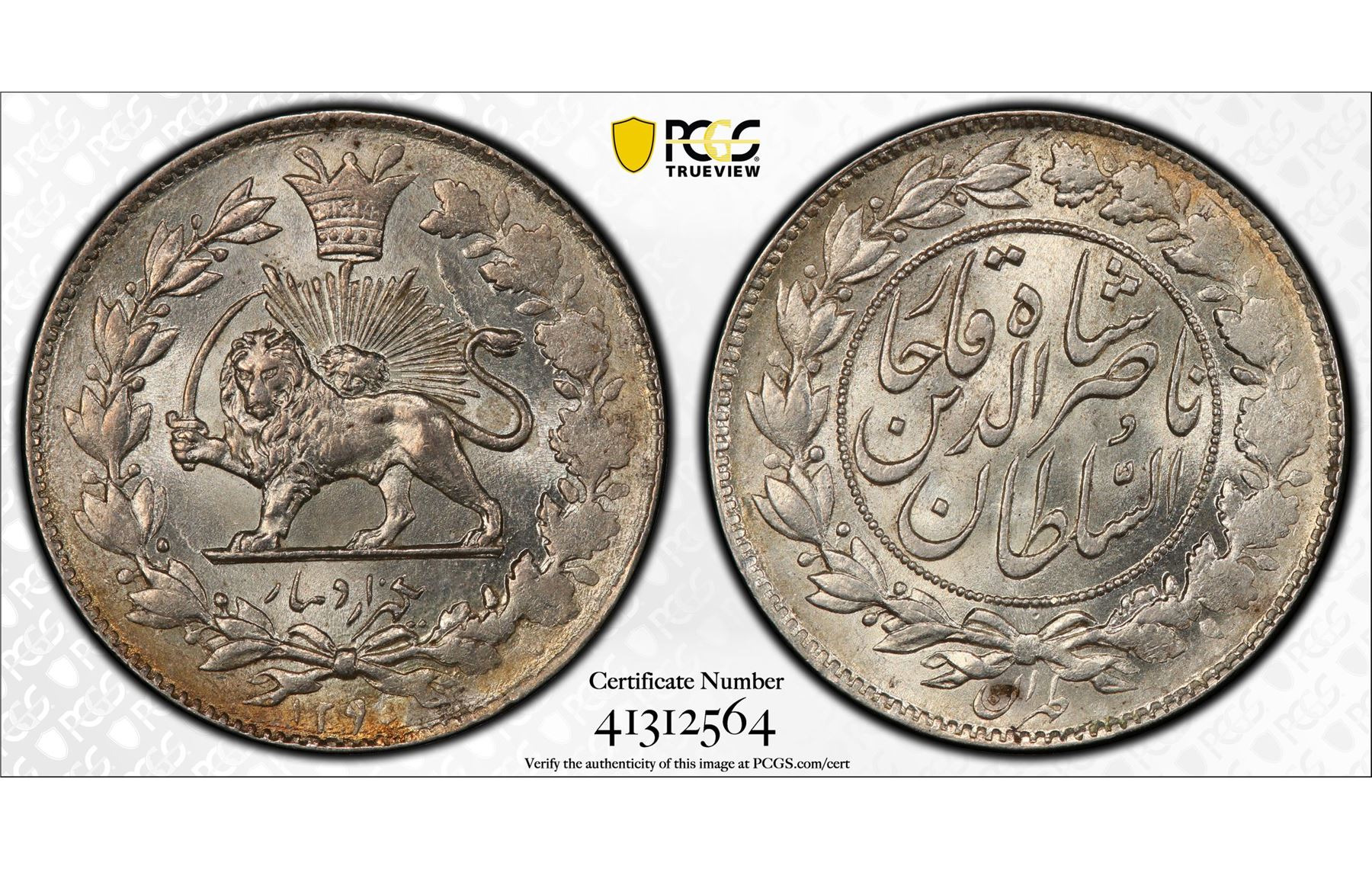IRAN: Nasir al-Din Shah, 1848-1896, AR 1000 dinars, Tehran, AH1296/5, PCGS MS65